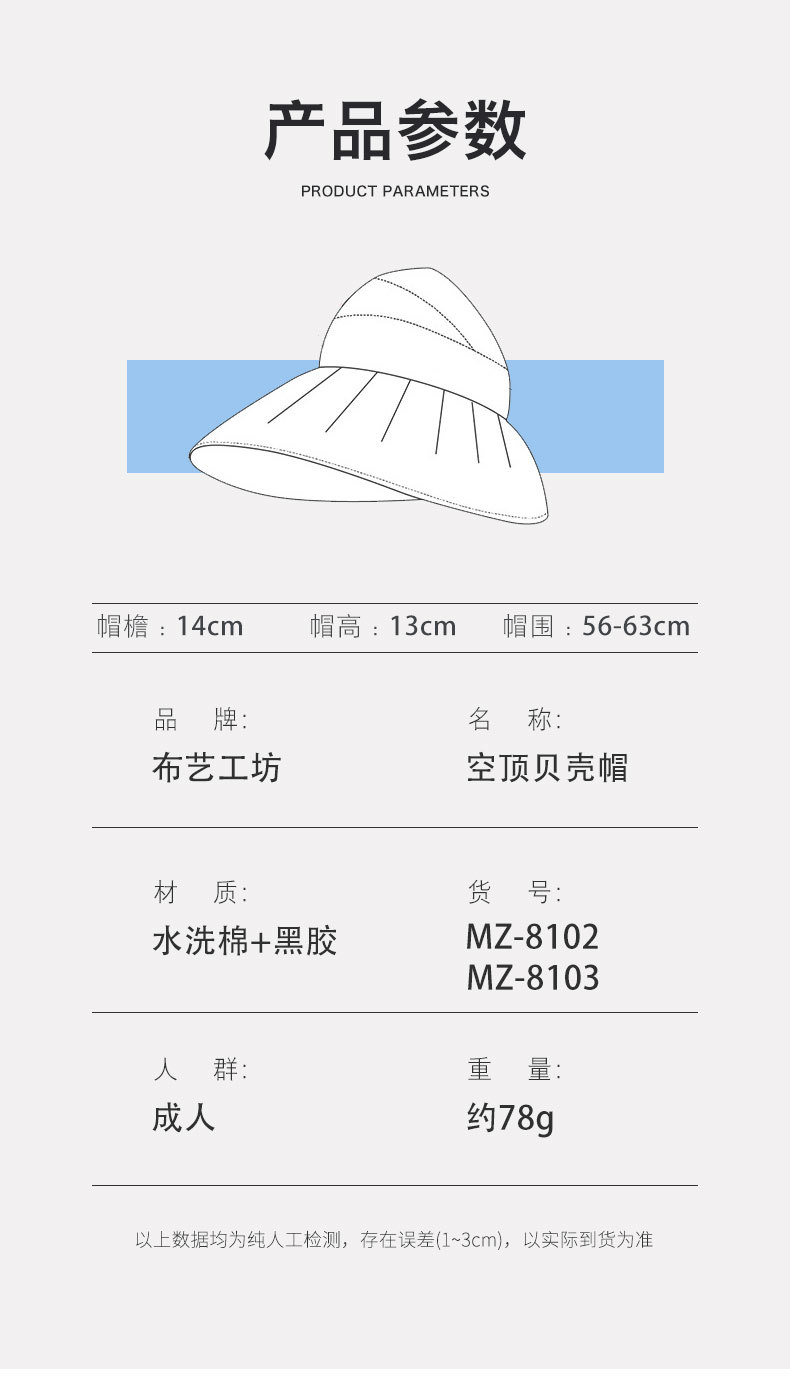 描述:货源类别:现货,货号:MZ-8103,产品类别:空顶帽,适用性别:女,材质:聚酯纤维,风格:百搭,流行元素:光身,图案:单色,适合季节:夏季,春季,秋季,春秋季,是否外贸:是,是否库存:否,产地:浙江,帽顶款式:无顶,帽檐款式:宽檐,颜色:黑色,粉色,卡其,米色,姜黄,蝴蝶结款黑色,蝴蝶结款枣红,尺码:均码,功能:防晒,透气,防水,减龄,遮阳,适用场景:沙滩,出游,逛街,设计,户外,旅行,送礼,旅拍,适用对象:少年,青年,中年,亲子,是否跨境出口专供货源:是,主要下游平台:ebay,亚马逊,wish,速卖通,独立站,LAZADA,主要销售地区:非洲,欧洲,南美,东南亚,北美,东北亚,中东,上市年份/季节:2022年夏季,