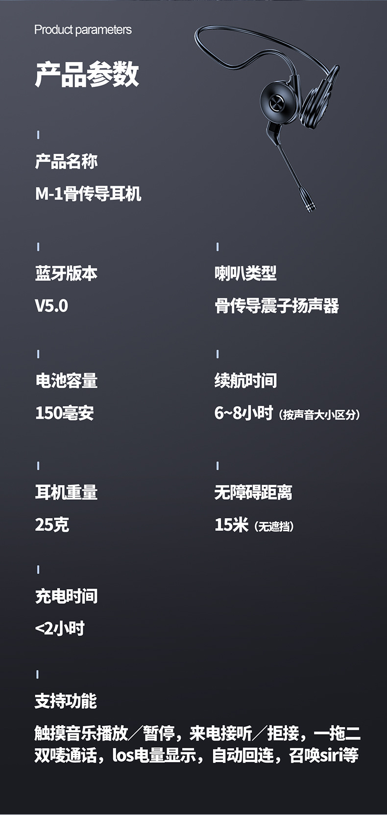 标题:M1骨传导蓝牙耳机新款真立体声对耳带唛跑步运动 商务跨境外贸款