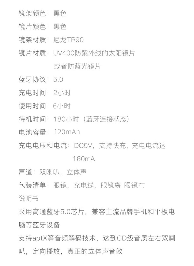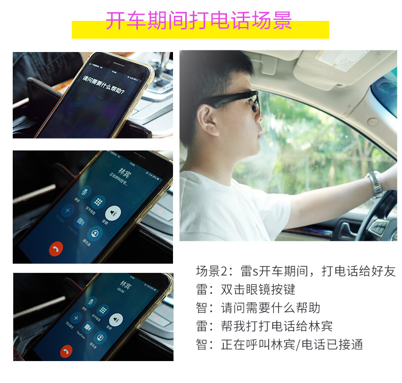 标题:智能蓝牙眼镜骨传导开车无线耳机太阳偏光防蓝光手机音乐听歌运动