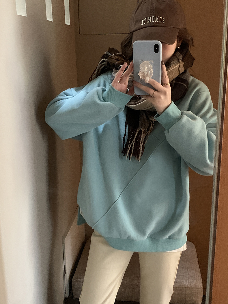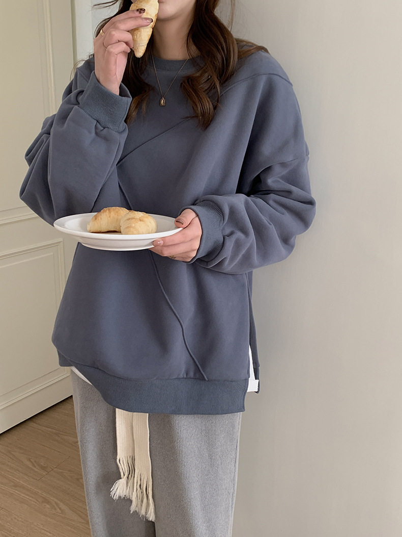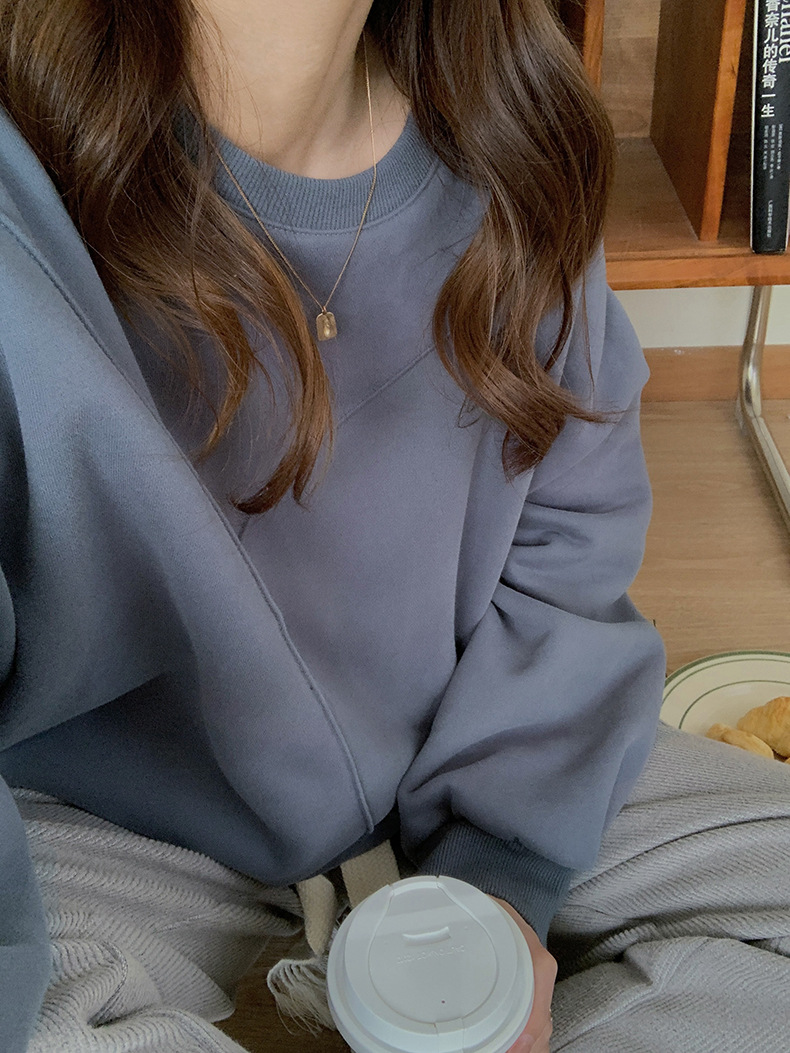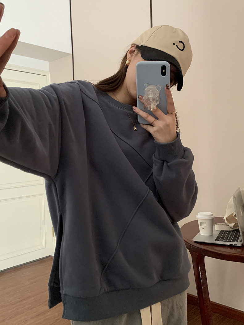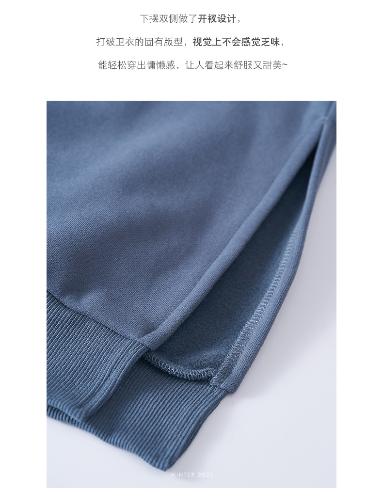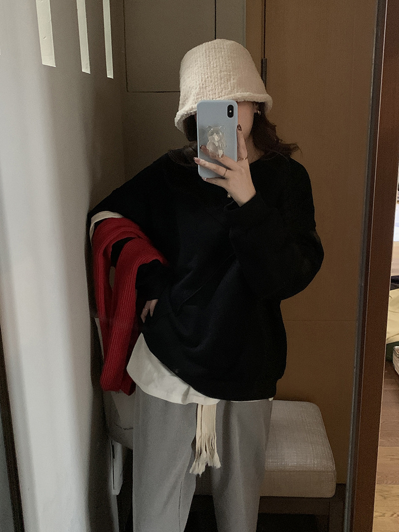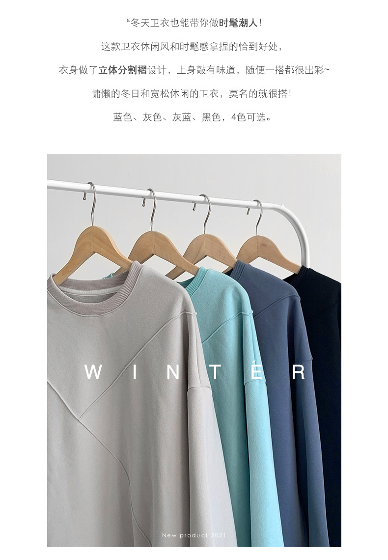 标题:黄峥设计感卫衣女加绒2021秋冬韩版宽松休闲简约圆领上衣W84107