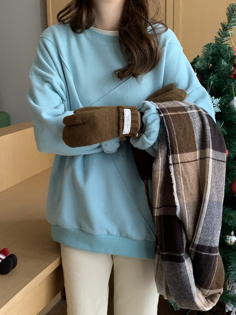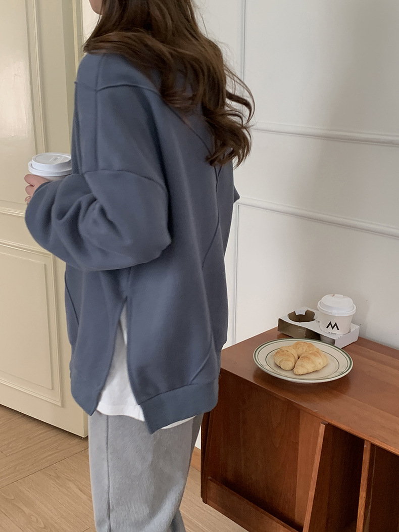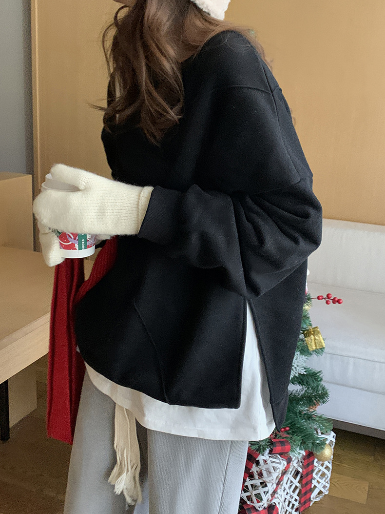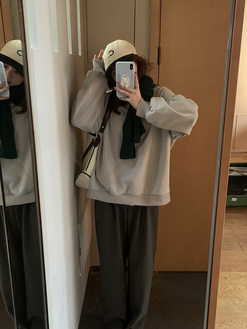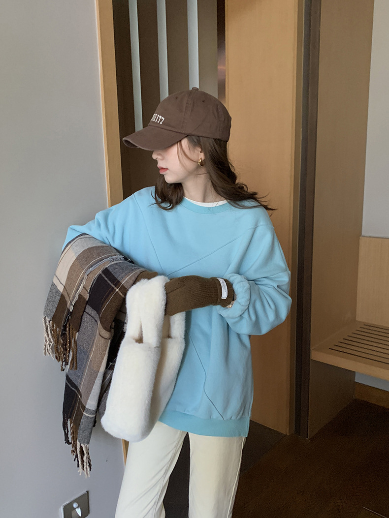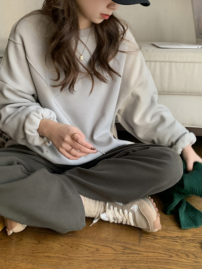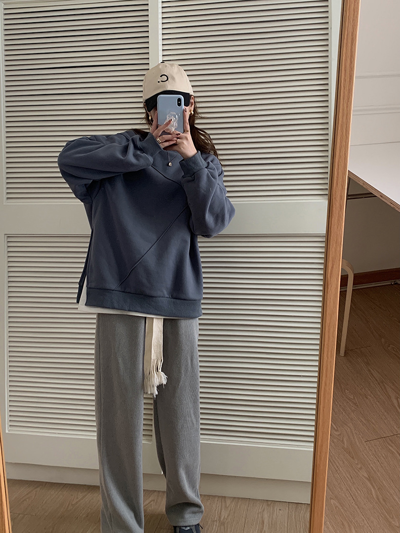 标题:黄峥设计感卫衣女加绒2021秋冬韩版宽松休闲简约圆领上衣W84107