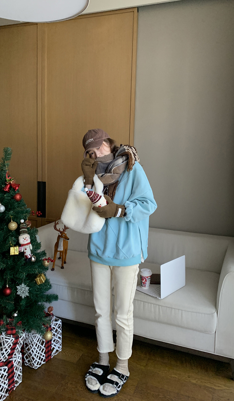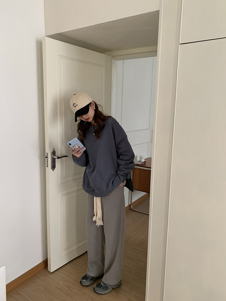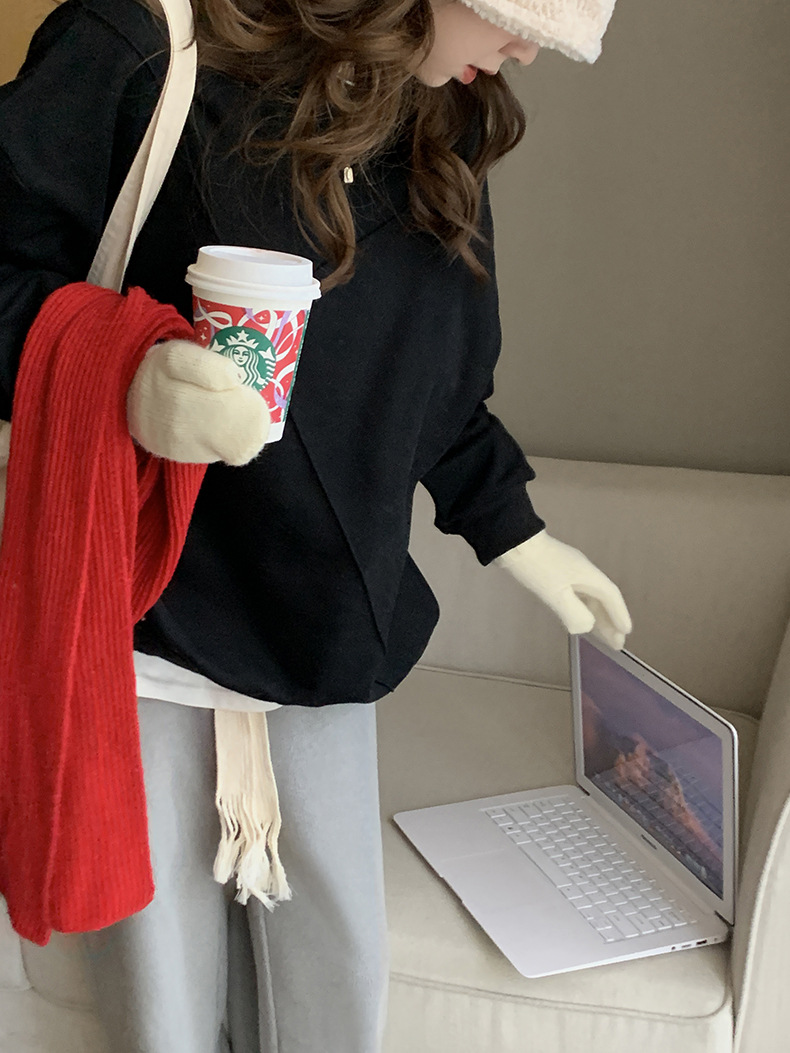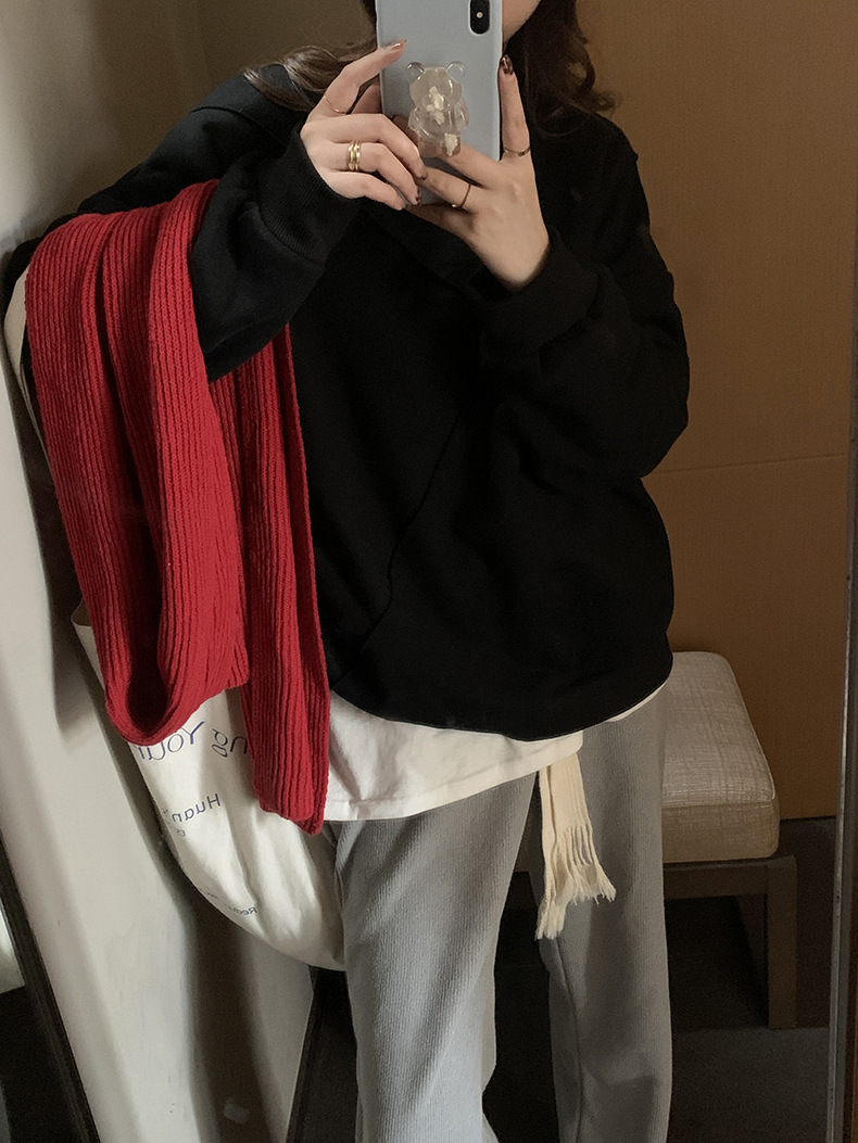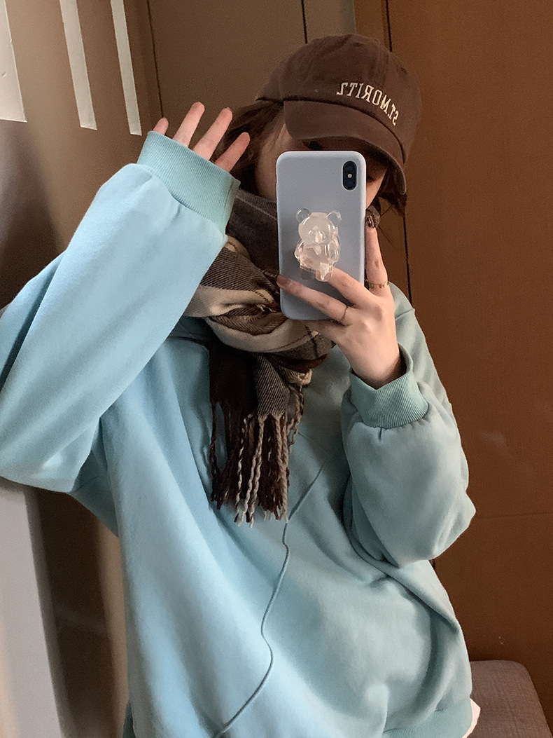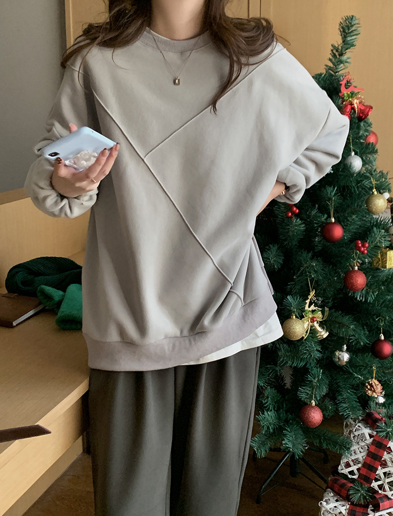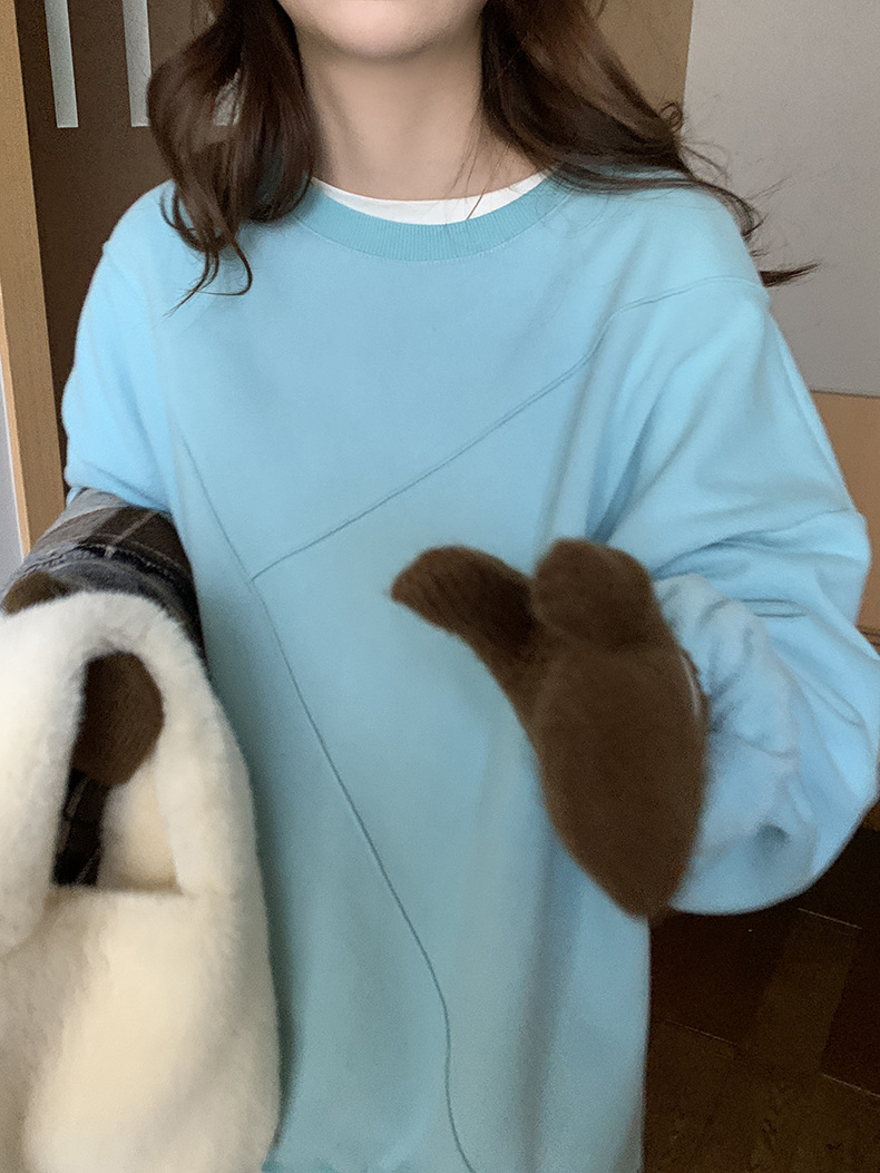 标题:黄峥设计感卫衣女加绒2021秋冬韩版宽松休闲简约圆领上衣W84107