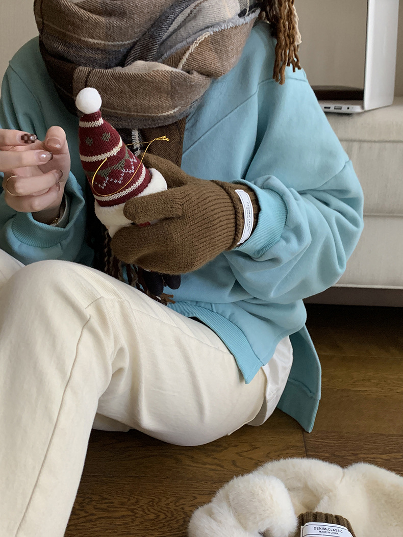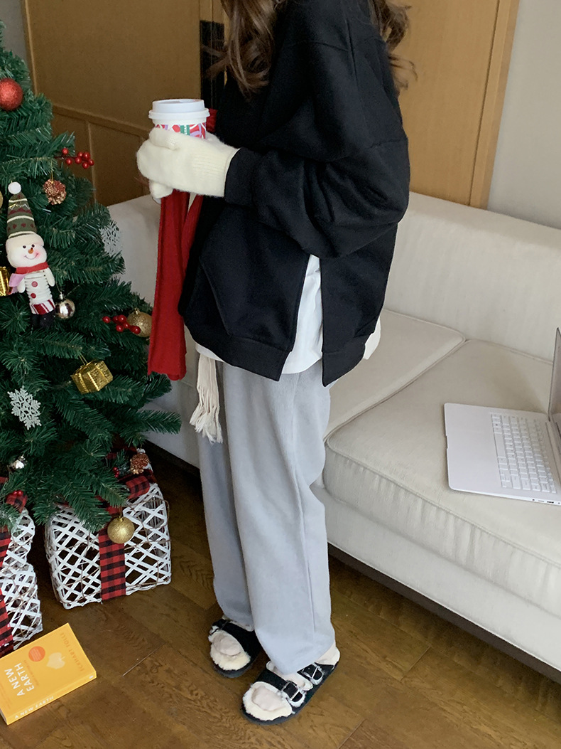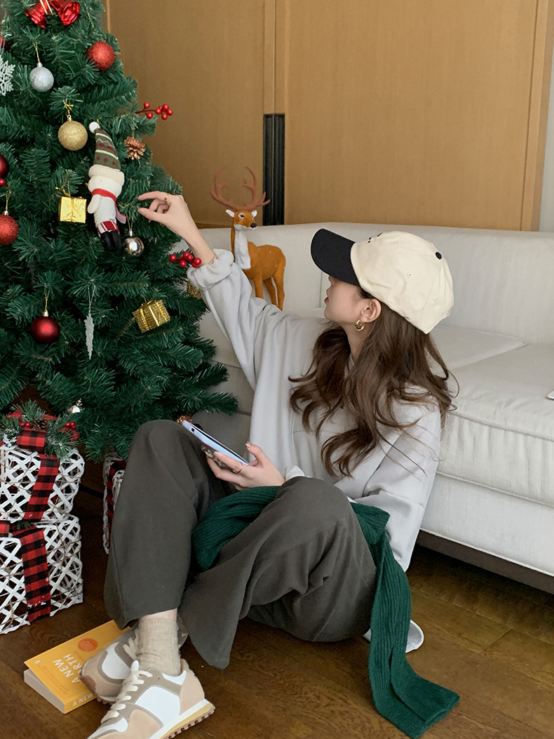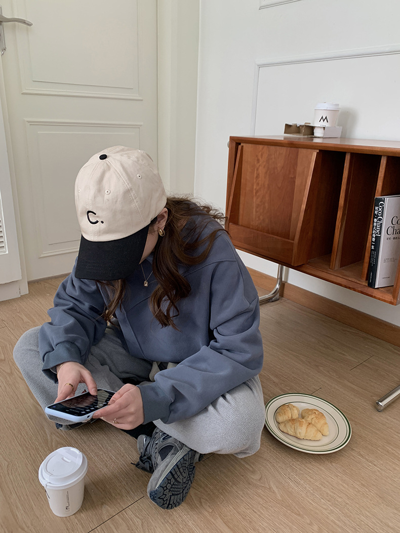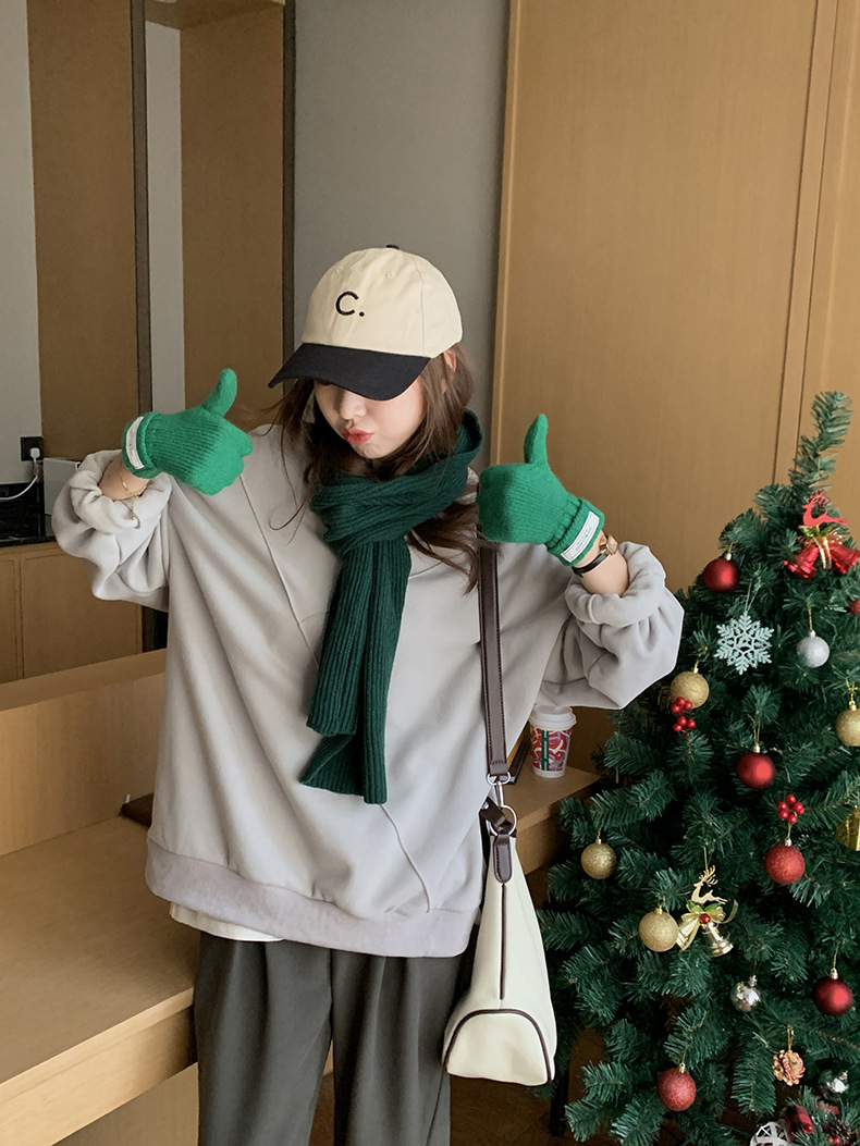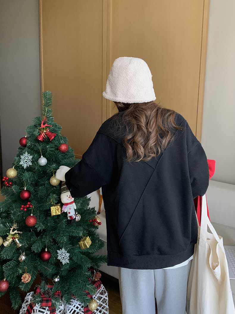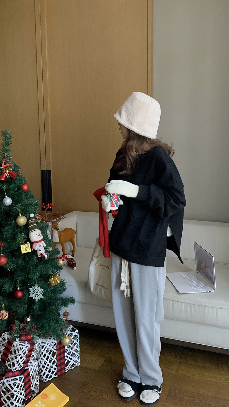 标题:黄峥设计感卫衣女加绒2021秋冬韩版宽松休闲简约圆领上衣W84107