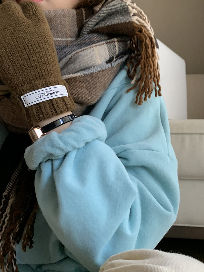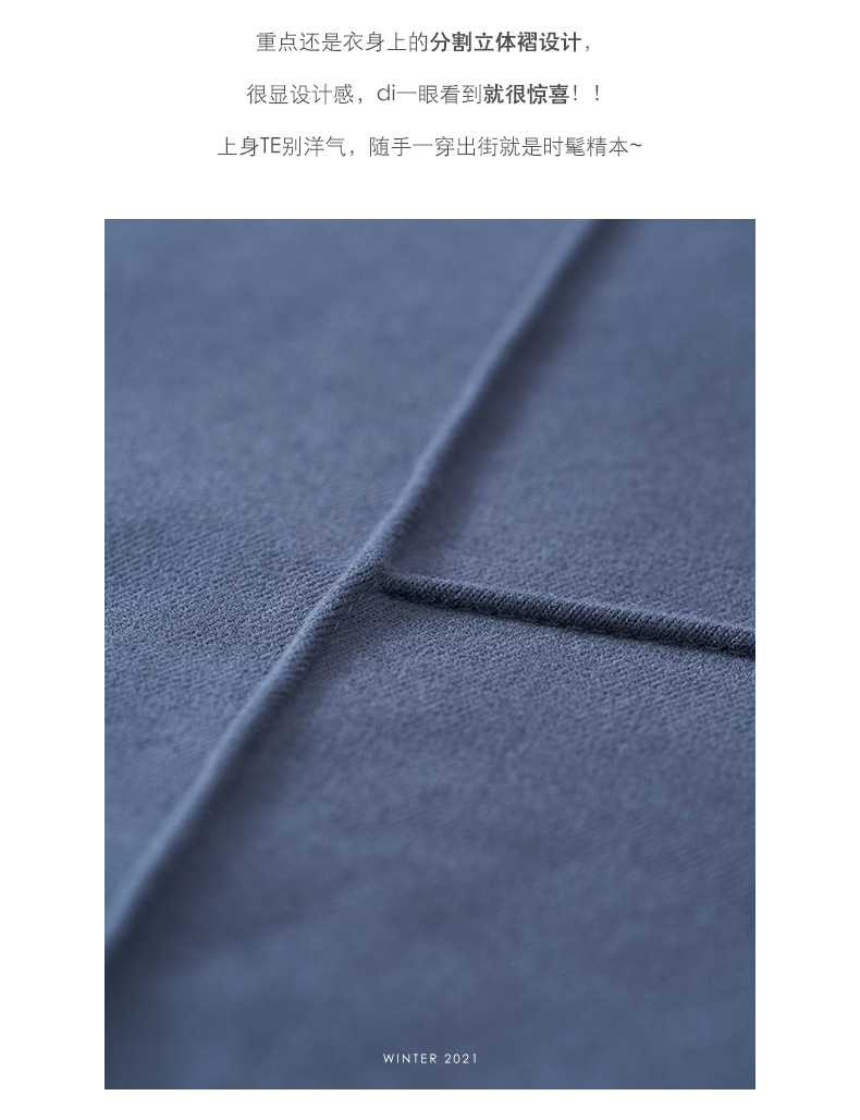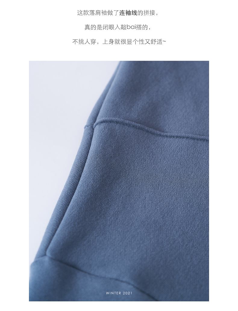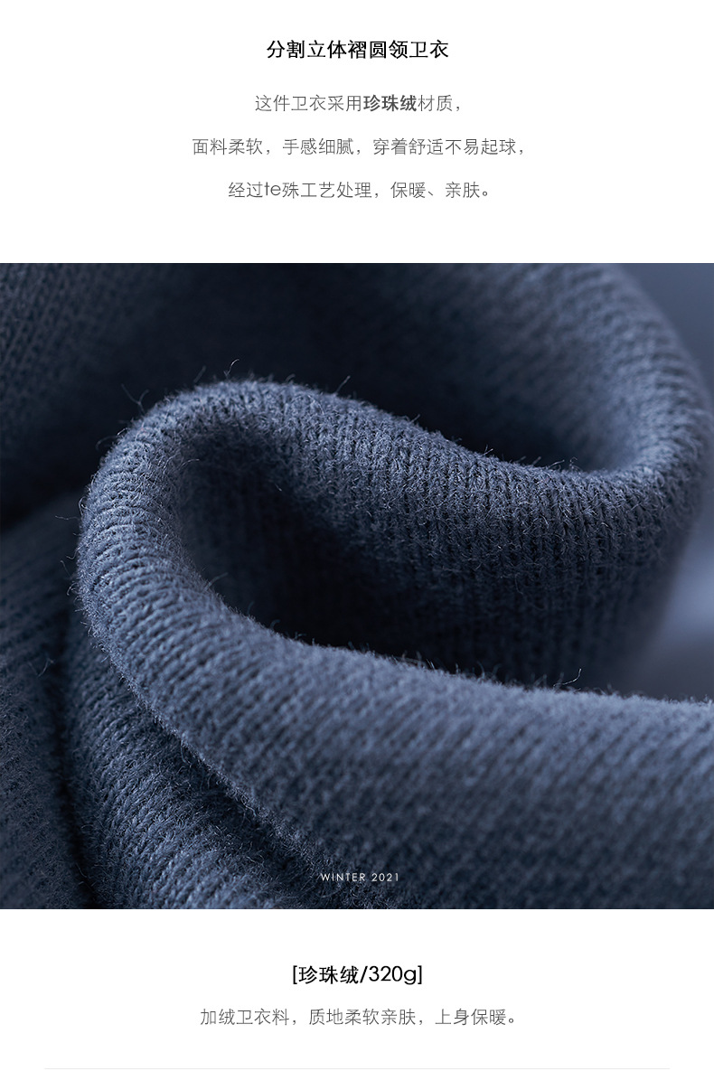 描述:货号:W84107,产地:广州,品牌:hooozen,主图来源:实拍有模特,货源类别:现货,是否库存:否,风格:休闲,图案:纯色,款式:套头,版型:宽松型,组合形式:单件套,衣长:中长款(65cm<衣长≤80cm),袖长:长袖,袖型:常规袖,领型:圆领,厚薄:加绒,流行元素:分割拉体褶,工艺:高温整烫,上市年份/季节:2021年冬季,面料名称:ZT5328珍珠绒/320g,主面料成分:棉,主面料成分的含量:30%-50%,主面料产地是否进口:否,颜色:灰色,黑色,灰蓝色,蓝色,尺码:均码,是否跨境出口专供货源:否,适合年龄:18-24周岁,服装风格:韩版,风格类型:都市休闲,