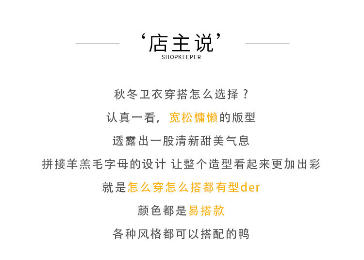 描述:货号:chushi-W02,产地:深圳,主图来源:官方图片,货源类别:现货,是否库存:否,风格:OL通勤,图案:字母,款式:套头,版型:宽松型,组合形式:单件套,衣长:中长款(65cm<衣长≤80cm),袖长:长袖,袖型:常规,领型:连帽/帽领,厚薄:加绒,流行元素:刺绣,螺纹,拼接,工艺:刺绣/绣花,上市年份/季节:2021年冬季,面料名称:聚酯纤维,主面料成分:聚酯纤维(涤纶),主面料成分的含量:91%-99%,里料成分:聚酯纤维(涤纶),里料成分含量:91%-99%,主面料产地是否进口:否,颜色:米白色,浅灰色,浅绿色,深蓝色,尺码:M,L,XL,主要下游平台:ebay,亚马逊,wish,速卖通,独立站,LAZADA,主要销售地区:非洲,欧洲,南美,东南亚,北美,东北亚,中东,有可授权的自有品牌:否,是否跨境出口专供货源:是,适合年龄:18-24周岁,服装风格:韩版,风格类型:气质通勤,