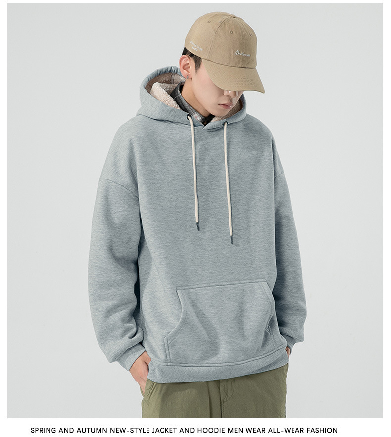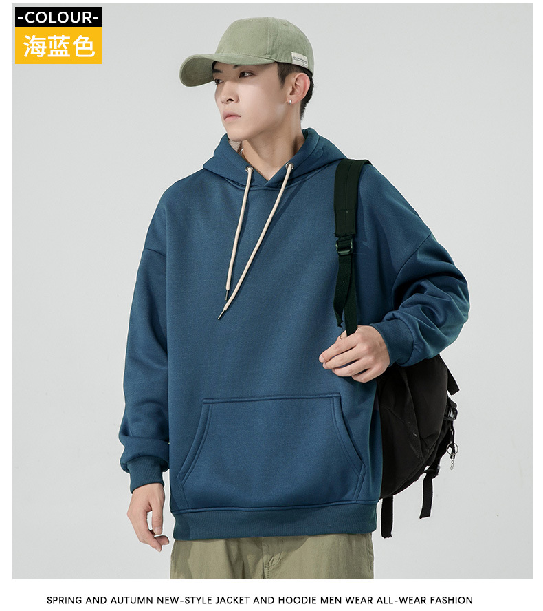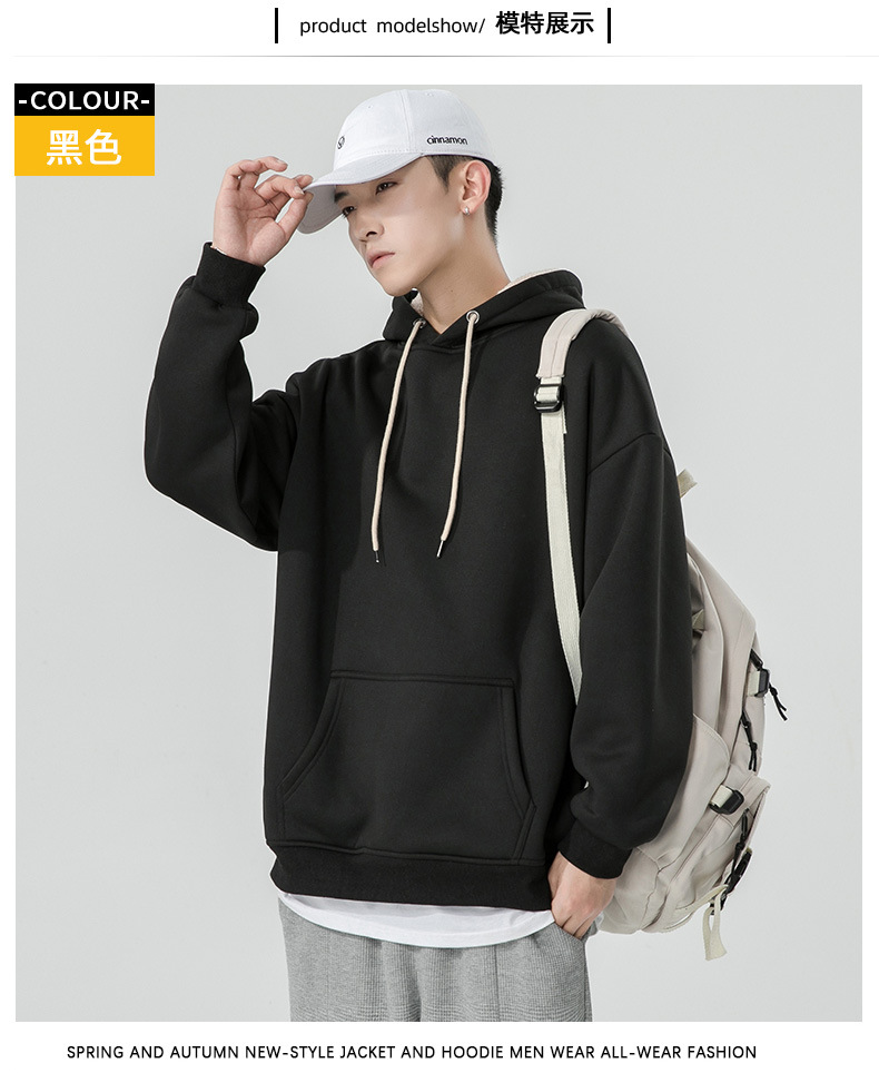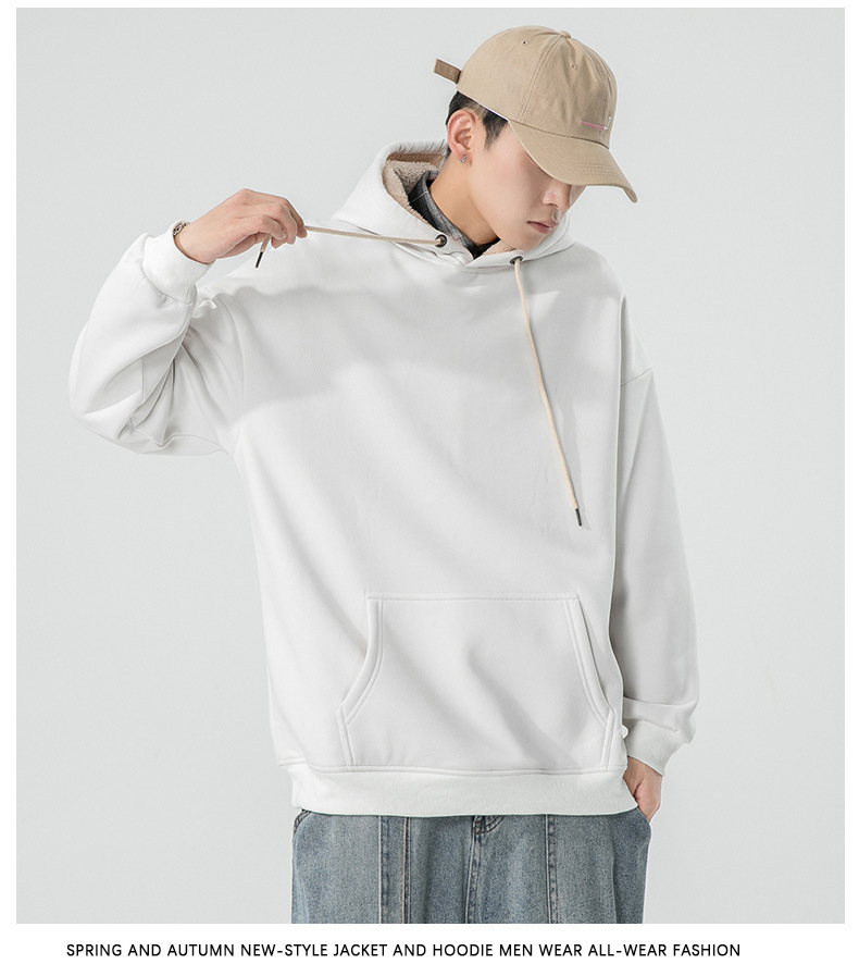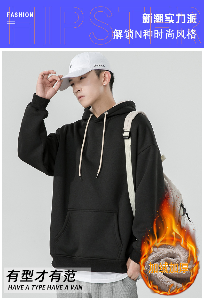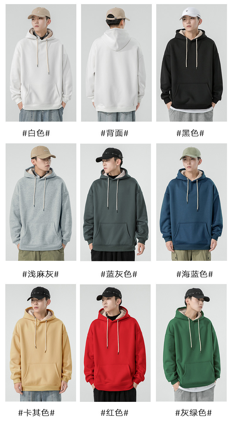 标题:工厂批发秋冬新款加绒连帽卫衣长袖重磅纯色套头宽松落肩卫衣男士