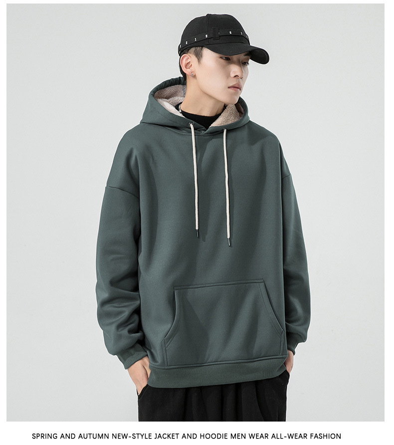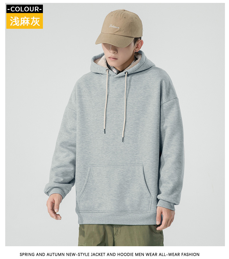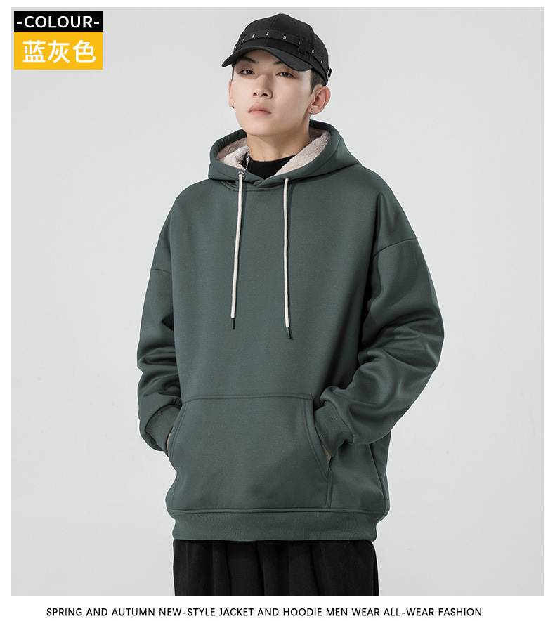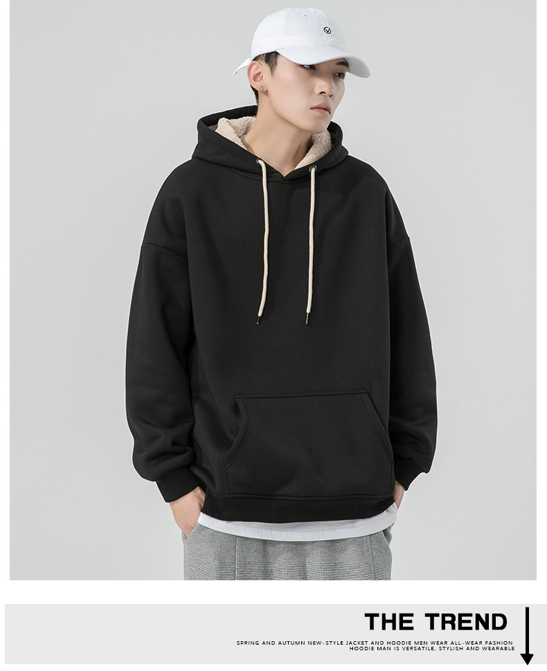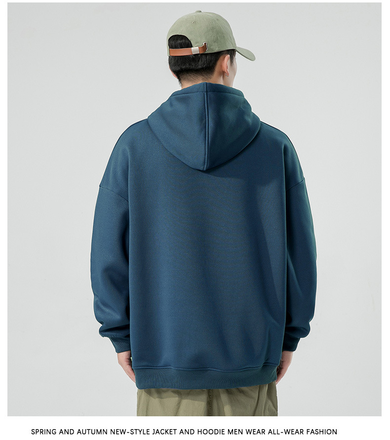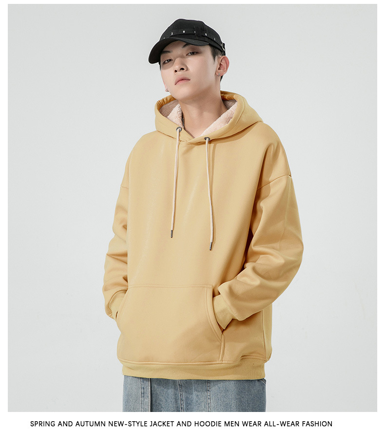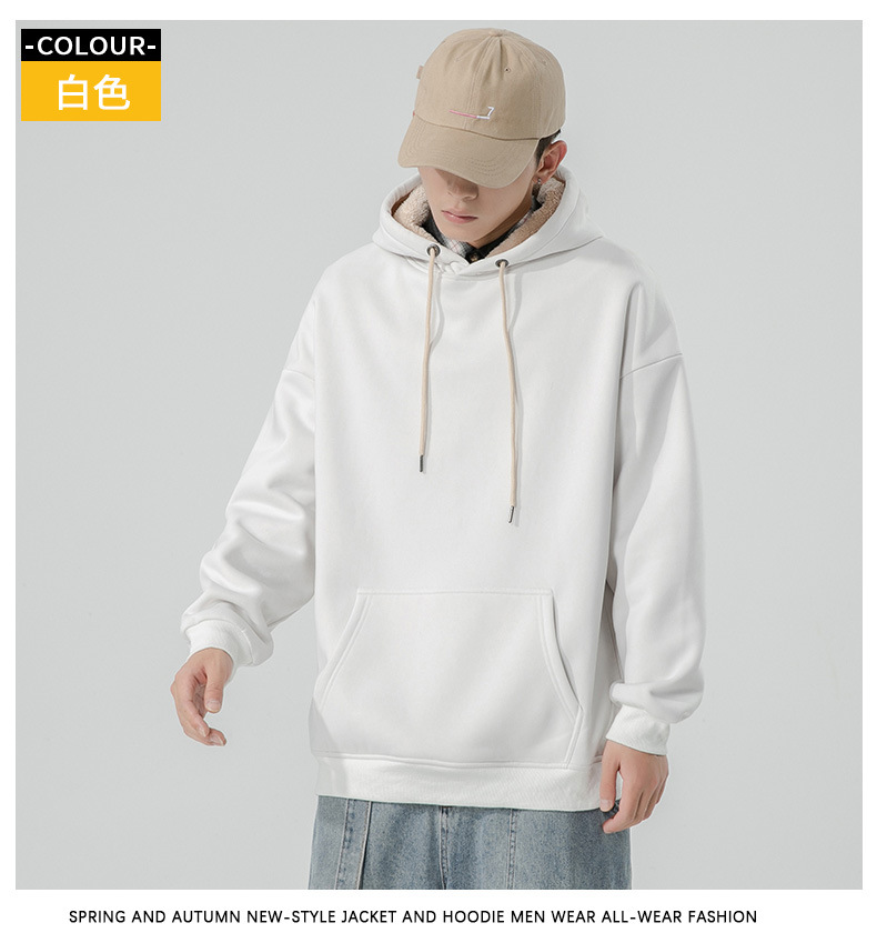 标题:工厂批发秋冬新款加绒连帽卫衣长袖重磅纯色套头宽松落肩卫衣男士
