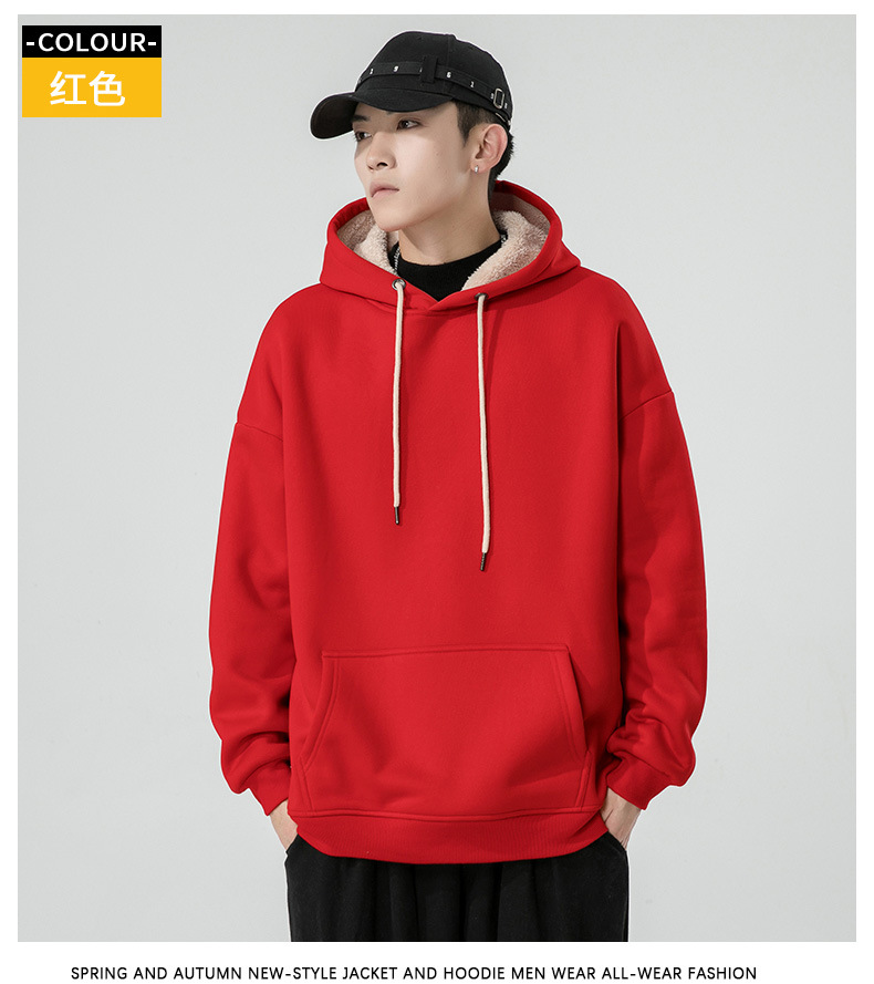 描述:货源类别:现货,品牌:金利恒,货号:RL8435A,上市年份/季节:2021年冬季,是否套装:否,风格:韩版,淘货类别:青春流行(18-24岁),款式:套头,有无内胆:无内胆,领型:无领,领口形状:圆领,袖长:长袖,是否连帽:连帽,厚薄:加绒,误差范围:1-3CM,适合季节:冬季,主面料成分:聚酯纤维(涤纶),主面料成分的含量:100,面料名称:仿棉盖丝复合北极绒,适用场景:休闲,图案:纯色,版型:宽松型,工艺:复合,服装口袋样式:省插袋,颜色:白色,卡其色,红色,黑色,海蓝,灰绿,浅麻灰,蓝灰,尺码:M,L,XL,XXL,XXXL,XXXXL,适合人群:青少年,主要下游平台:ebay,亚马逊,wish,速卖通,独立站,LAZADA,主要销售地区:非洲,欧洲,南美,东南亚,北美,东北亚,中东,有可授权的自有品牌:是,是否跨境出口专供货源:是,袖型:常规,原创设计货源:是,有无质检报告:否,