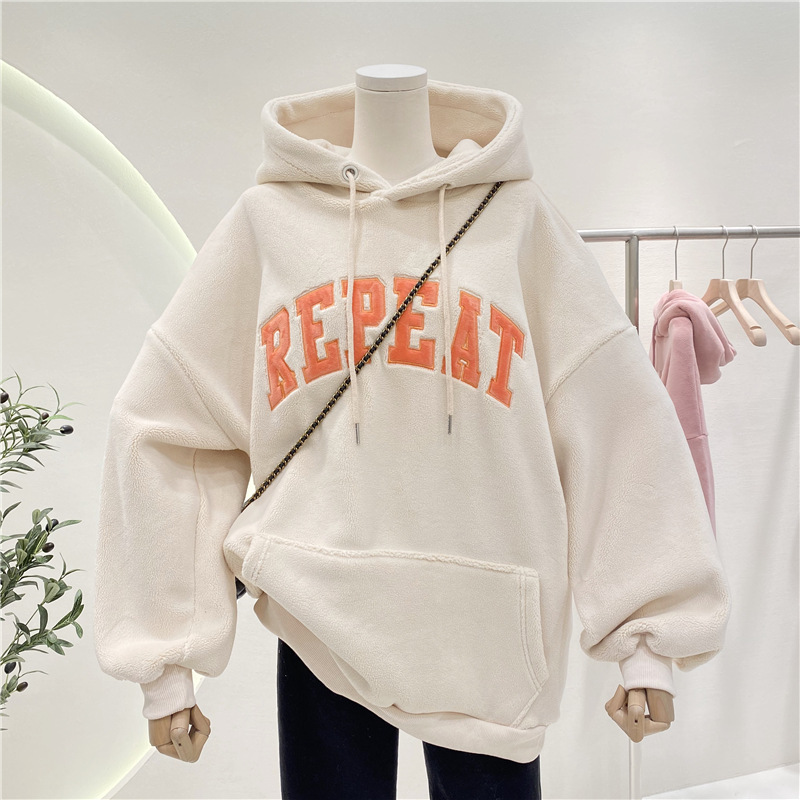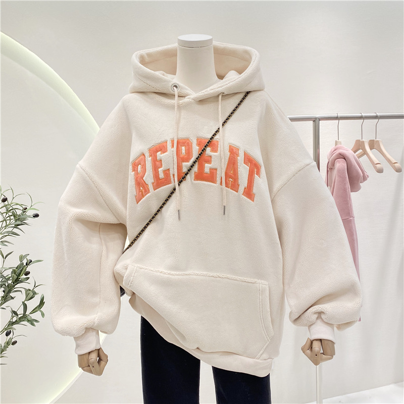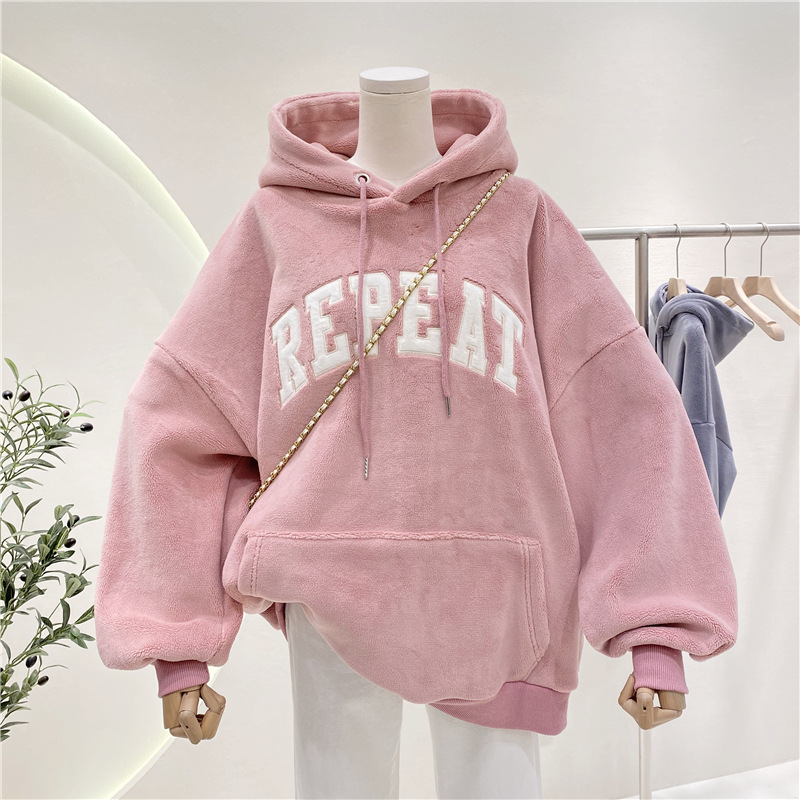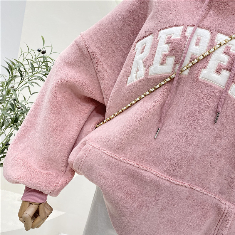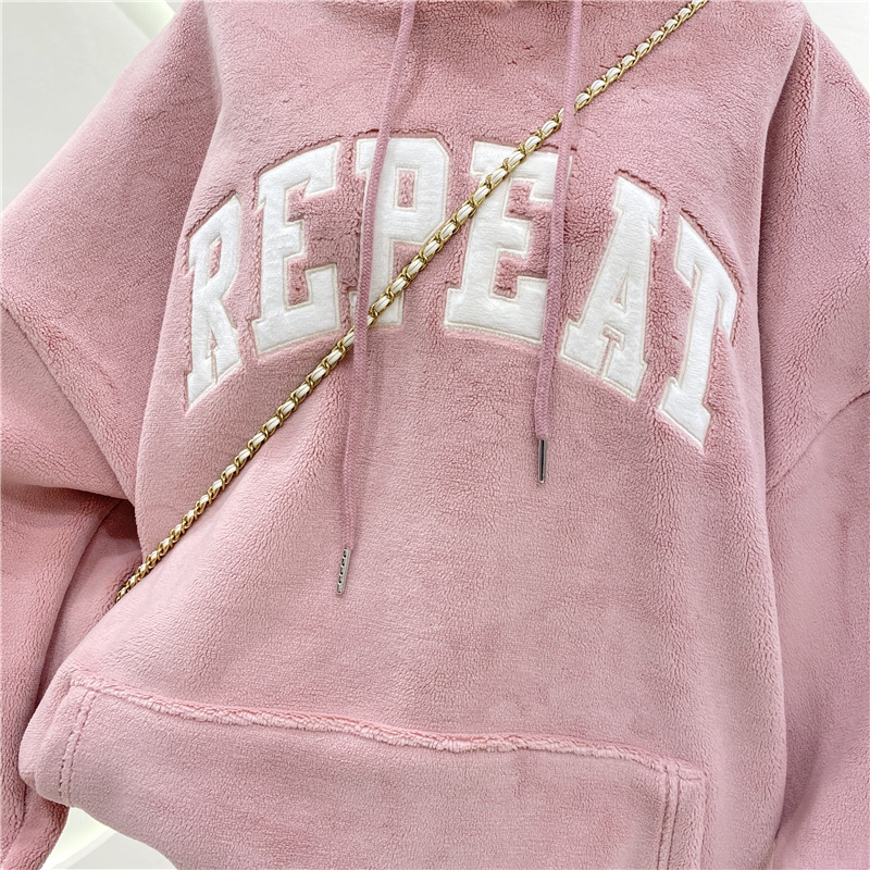 描述:货号:BC-21045,产地:揭阳,品牌:PRPN,主图来源:官方图片,货源类别:现货,是否库存:是,库存类型:整单,风格:OL通勤,图案:字母,款式:套头,版型:宽松型,组合形式:单件套,衣长:普通款(50cm<衣长≤65cm),袖长:长袖,袖型:常规袖,领型:连帽,厚薄:加绒,流行元素:刺绣,工艺:刺绣/绣花,上市年份/季节:2021年冬季,面料名称:聚酯纤维,主面料成分:聚酯纤维(涤纶),主面料成分的含量:91%-99%,里料成分:聚酯纤维(涤纶),里料成分含量:91%-99%,主面料产地是否进口:否,颜色:粉色,蓝色,米色,尺码:M,L,XL,XXL,主要下游平台:ebay,亚马逊,wish,速卖通,独立站,LAZADA,主要销售地区:非洲,欧洲,南美,东南亚,北美,东北亚,中东,有可授权的自有品牌:是,是否跨境出口专供货源:是,适合年龄:18-24周岁,服装风格:韩版,风格类型:气质通勤,