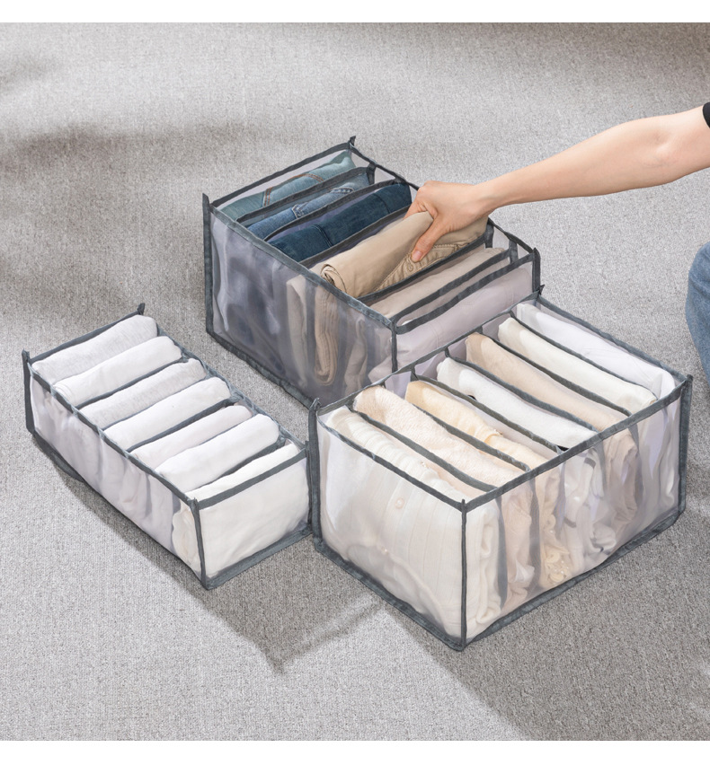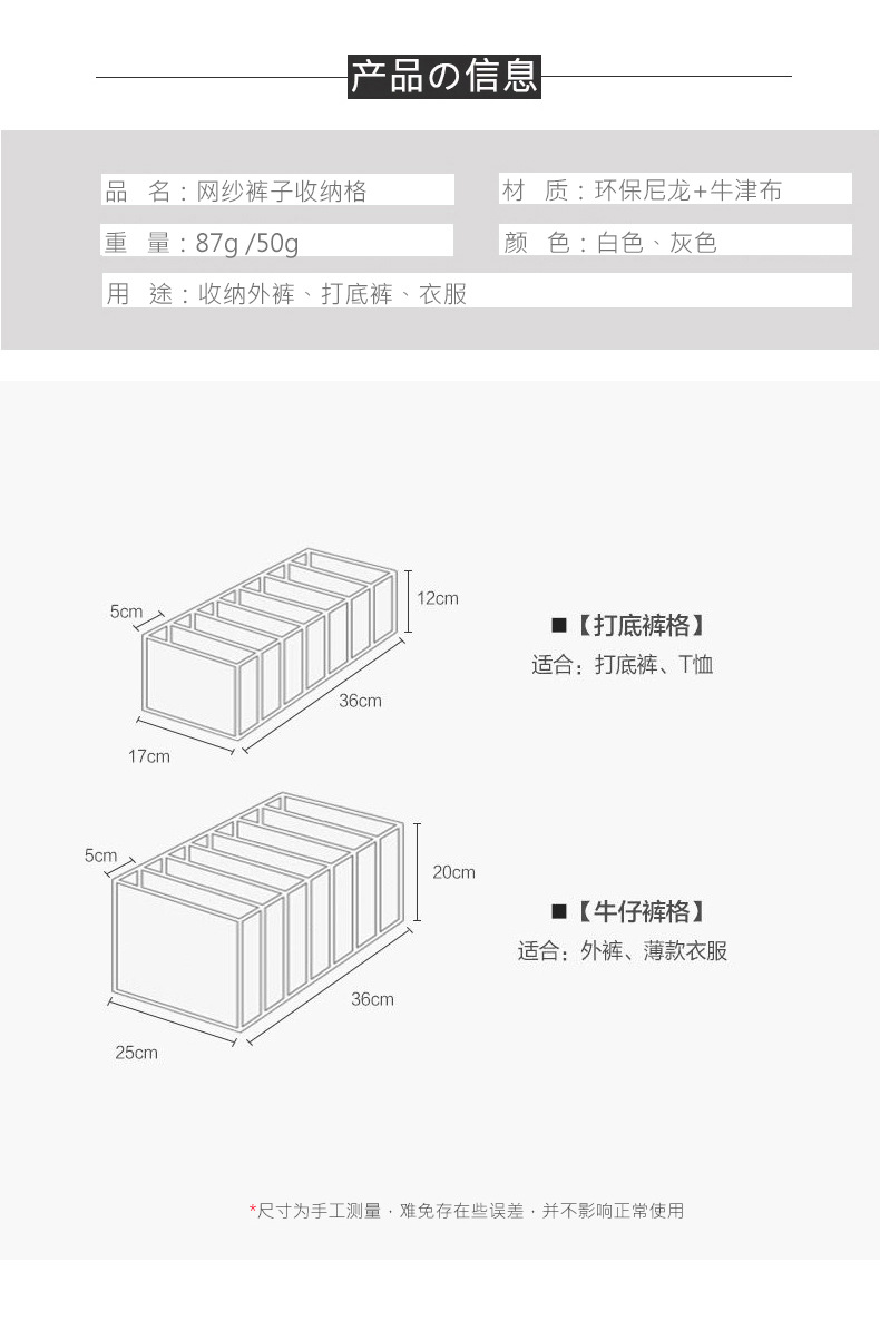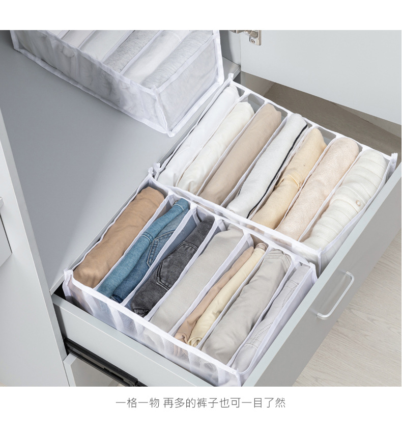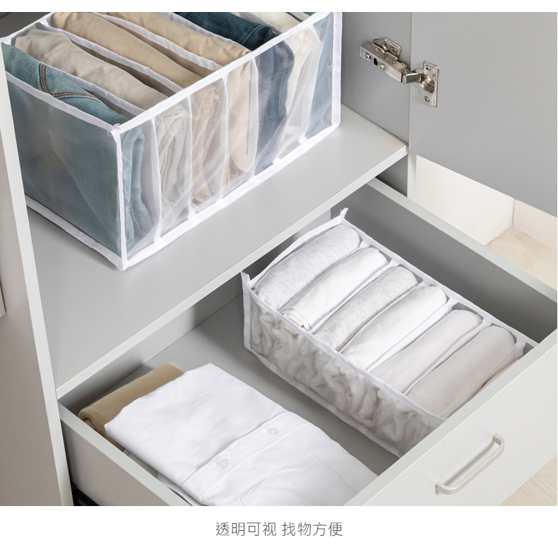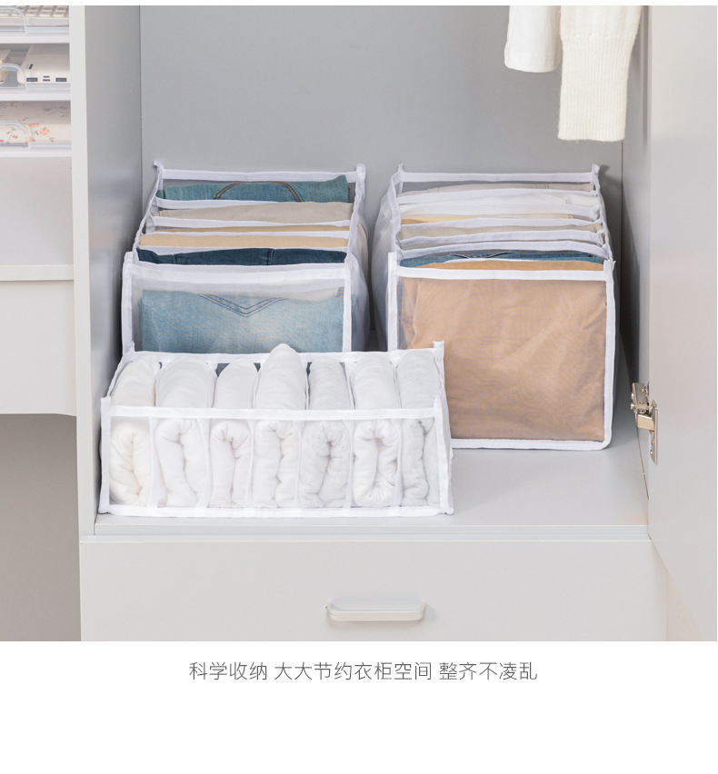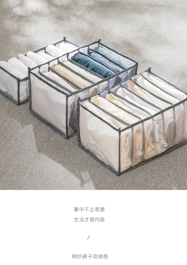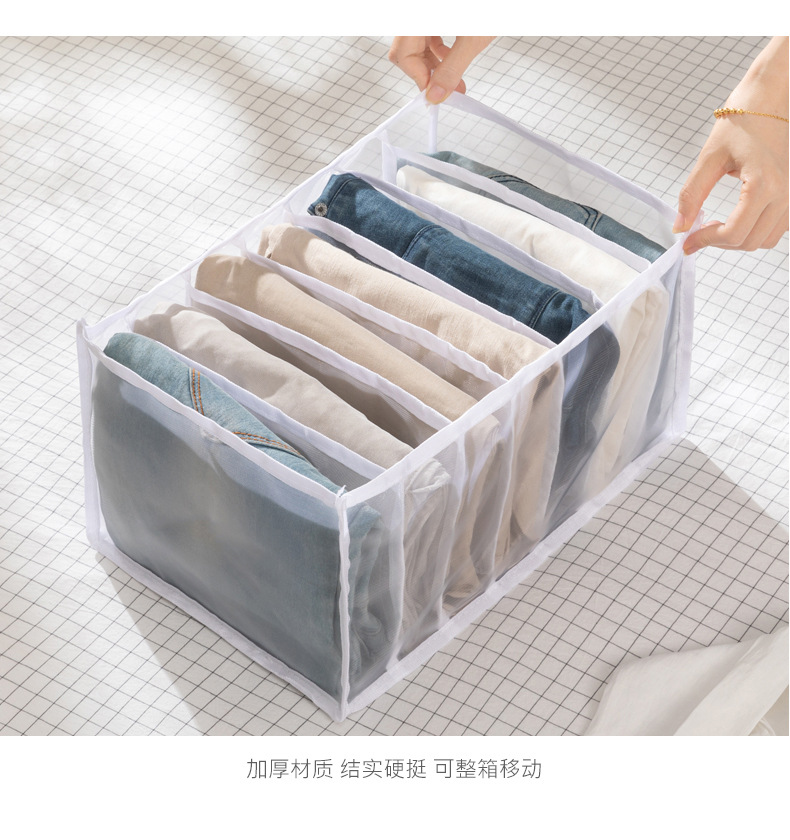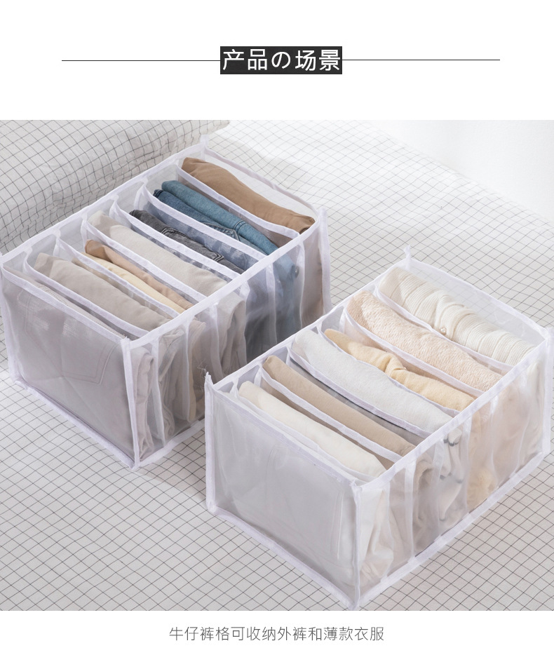标题:牛仔裤分格整理箱衣柜装衣服抽屉网纱分隔盒内衣裤子收纳衣服神器
