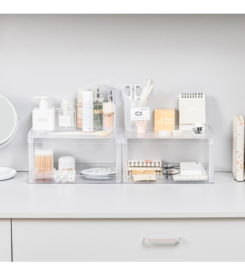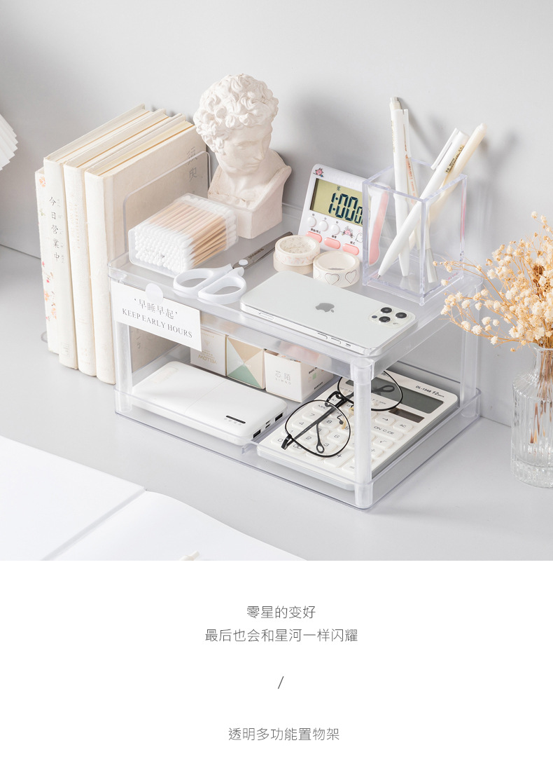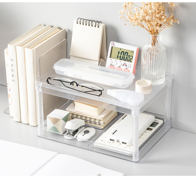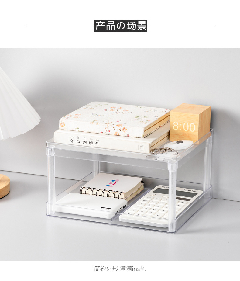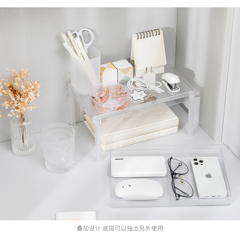 标题:透明桌面双层置物架家用塑料收纳架厨房小型收纳架桌面储物整理架