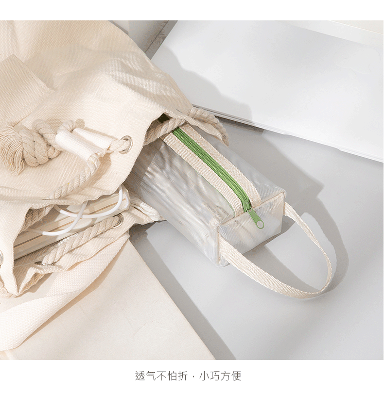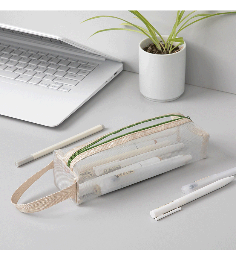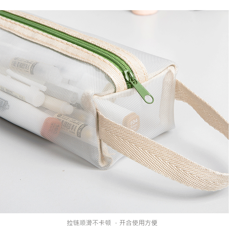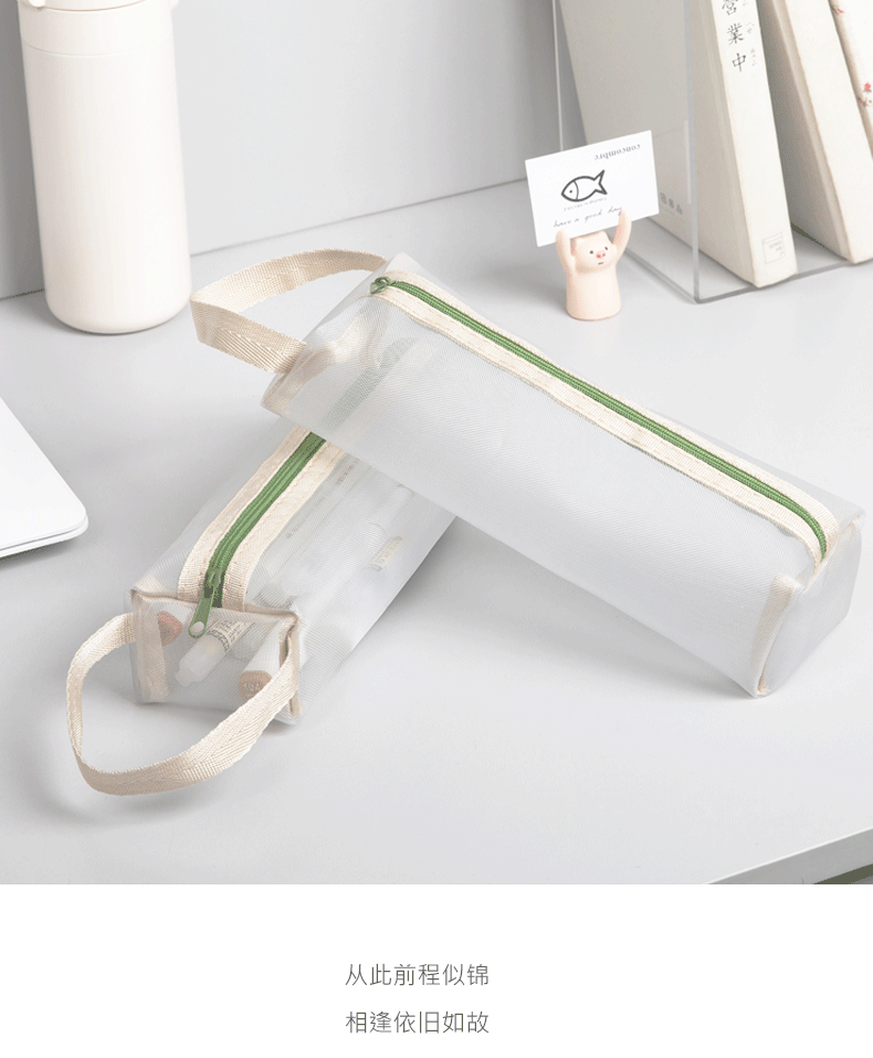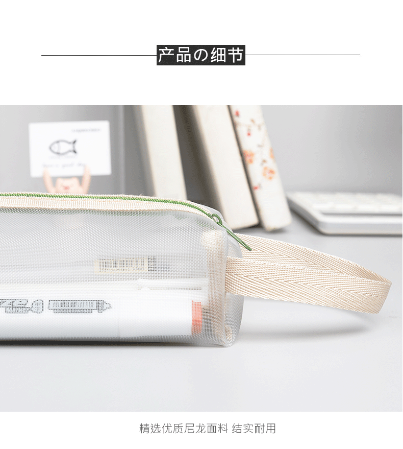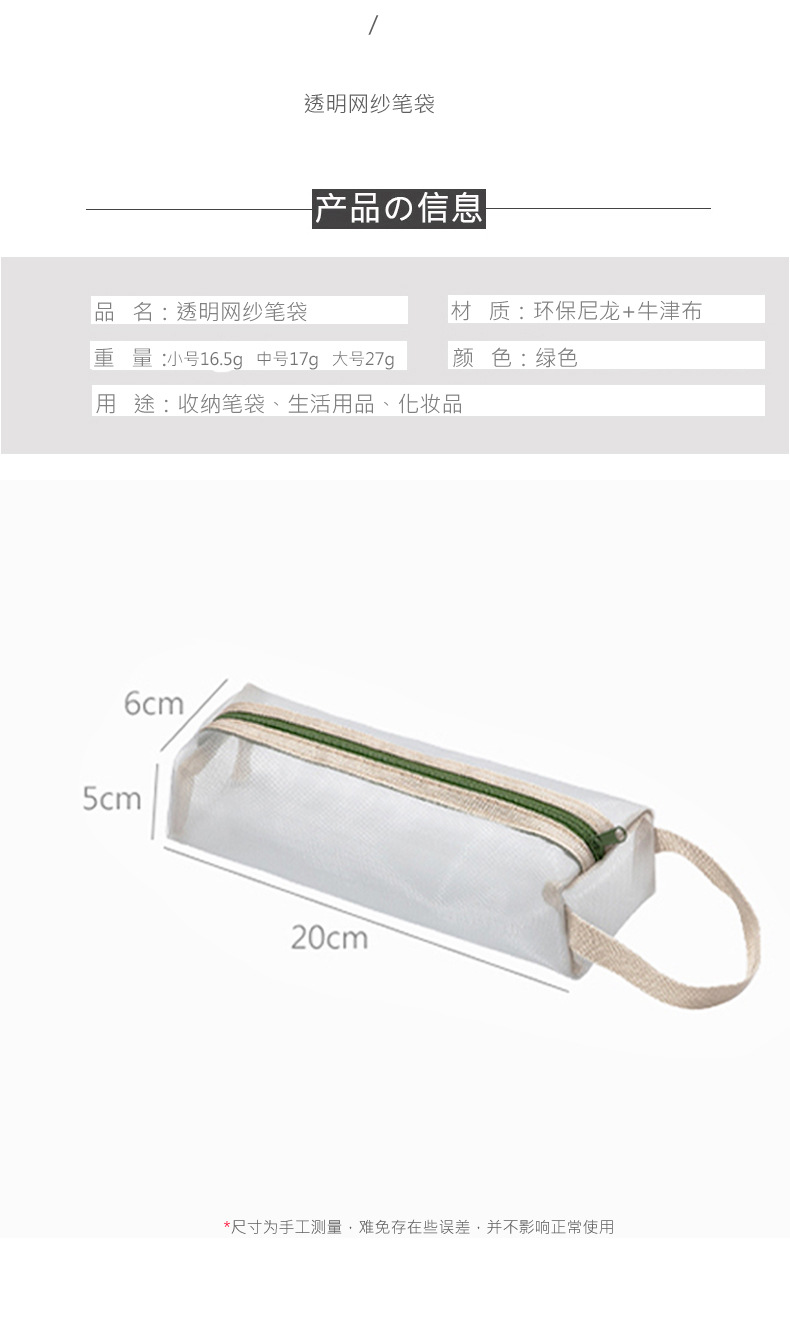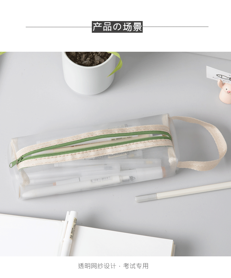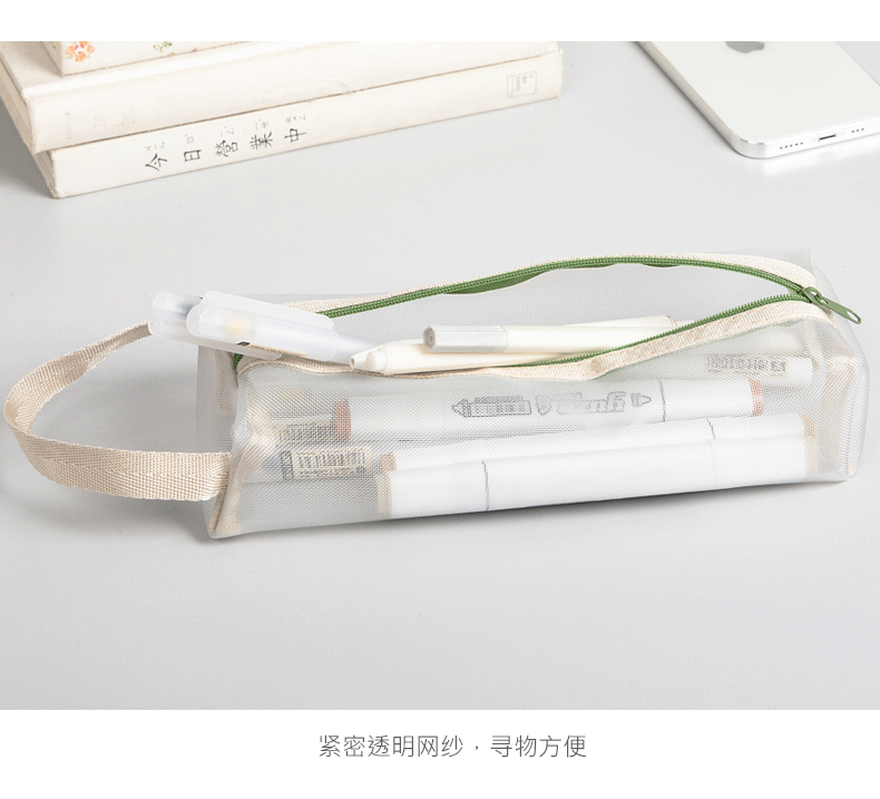 标题:透明网纱笔袋文具袋大容量学生用品铅笔袋简约ins风高考试收纳袋