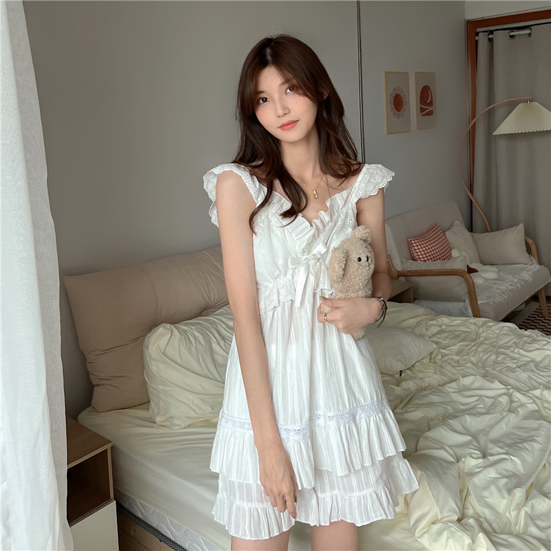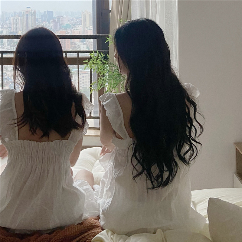 标题:韩国ins甜美闺蜜同款吊带带胸垫家居服套装夏季公主风睡裙睡衣女