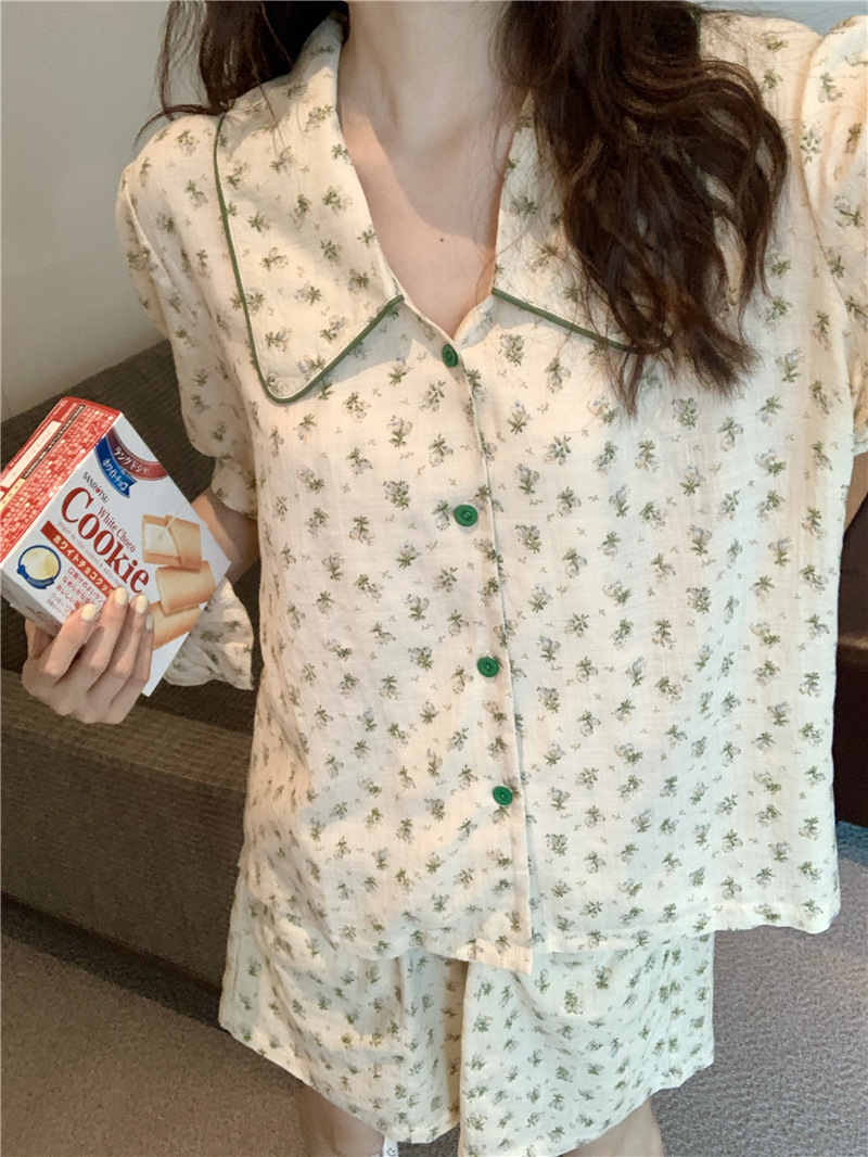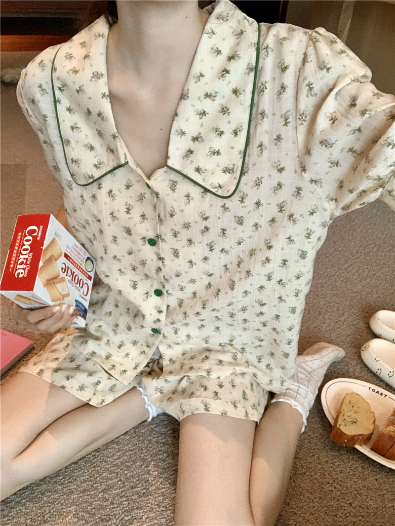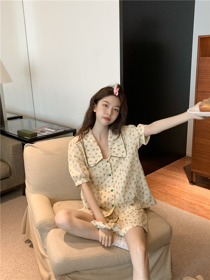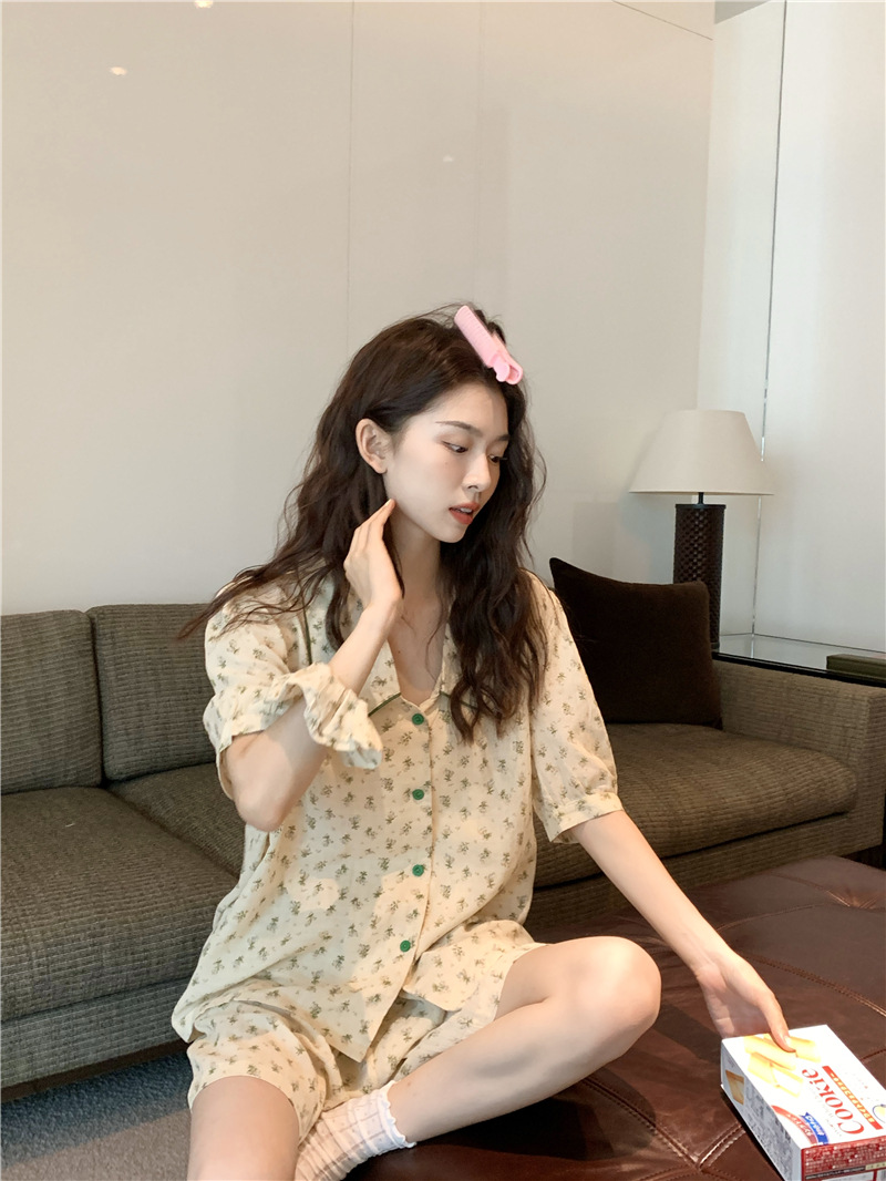 标题:韩国ins甜美碎花短袖睡衣女夏季家居服时尚纯欲风薄款套装送发圈