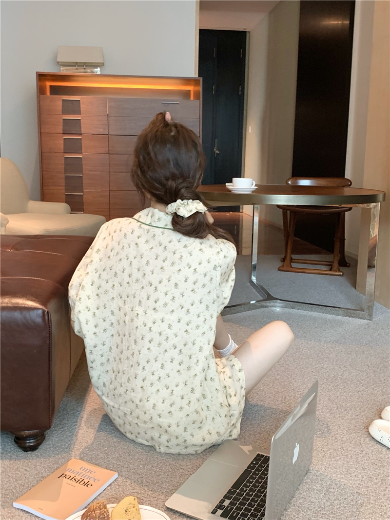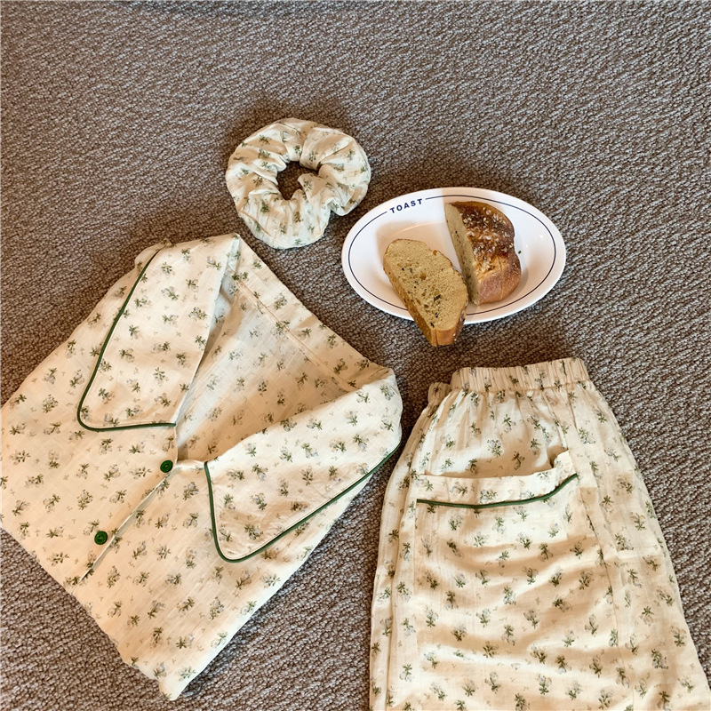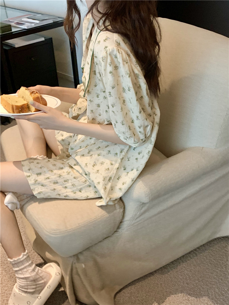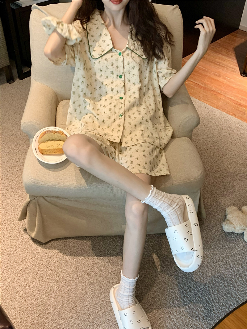 标题:韩国ins甜美碎花短袖睡衣女夏季家居服时尚纯欲风薄款套装送发圈
