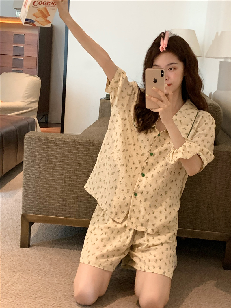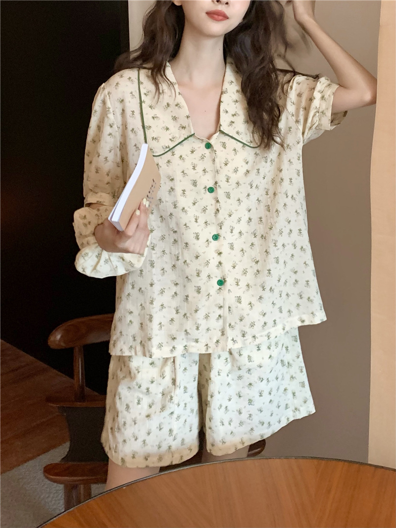 描述:产品类别:睡衣,面料名称:棉,风格:日韩特色,款式:套装,主面料成分:棉,主面料成分的含量:80,厚薄:薄款,面料厚薄(克重):薄 (101-120克/平米),领型:小翻领,袖长:短袖,裤长:短裤,功能:居家,保暖,可外穿,上市时间:2022年夏季,适合季节:夏季,适用性别:女,适用年龄段:青年(18-40周岁),适用人群类别:女士,适用场景:户外,居家,酒店浴场,婚庆影楼,颜色:图片色,尺码:均码,货源类别:现货,品牌:自主品牌,是否支持贴牌:不支持,是否支持代工:支持,产地:广州,货号:H-328F-7675,误差范围:1-3,是否外贸:是,是否库存:是,库存类型:整单,生产周期:5-7,是否进口:否,主要下游平台:ebay,亚马逊,wish,速卖通,独立站,LAZADA,主要销售地区:非洲,欧洲,南美,东南亚,北美,东北亚,中东,有可授权的自有品牌:否,是否跨境出口专供货源:是,包装形式:袋装,领口形状:V字领,面料支数:40支,件数:2件,