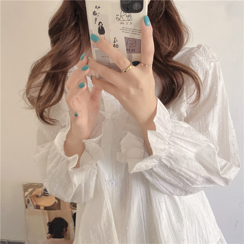 描述:产品类别:睡衣,面料名称:全棉,风格:蕾丝,款式:套装,主面料成分:棉,主面料成分的含量:95,厚薄:薄款,面料厚薄(克重):薄 (121-140克/平米),领型:圆领,袖长:长袖,裤长:长裤,功能:居家,舒适,上市时间:2021夏,适合季节:夏季,春季,秋季,适用性别:女,适用年龄段:青年(18-40周岁),适用人群类别:女士,适用场景:居家,颜色:仙仙白,尺码:均码,货源类别:现货,品牌:自主品牌,是否支持贴牌:支持,是否支持代工:支持,产地:广州,货号:H-412A-9305,误差范围:1-3,是否外贸:是,是否库存:是,库存类型:整单,合作过品牌:其他,贴牌对象:其他,主要销售渠道:淘宝,超市,品牌店,天猫,个体实体,国内商场,其他,改版:可以改版,最低贴牌量:100,是否进口:否,主要下游平台:ebay,亚马逊,wish,速卖通,独立站,LAZADA,主要销售地区:非洲,欧洲,南美,东南亚,北美,东北亚,中东,有可授权的自有品牌:否,是否跨境出口专供货源:是,包装形式:袋装,领口形状:圆领,