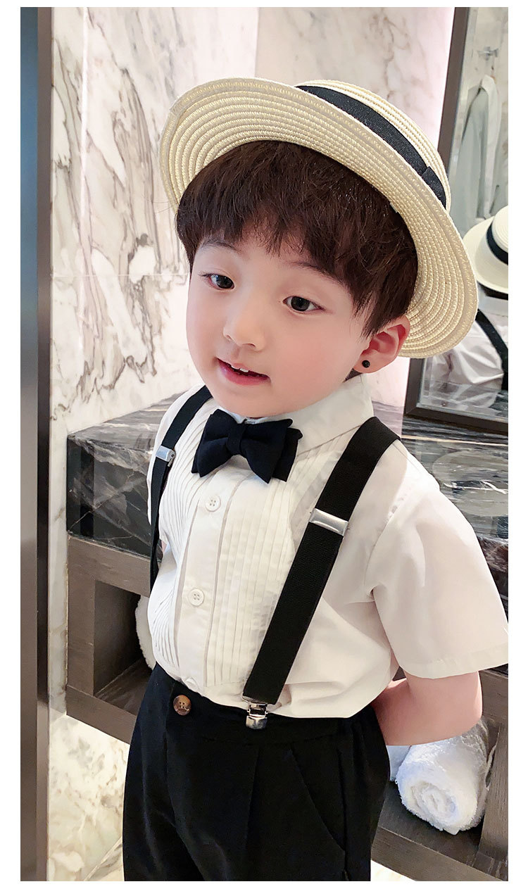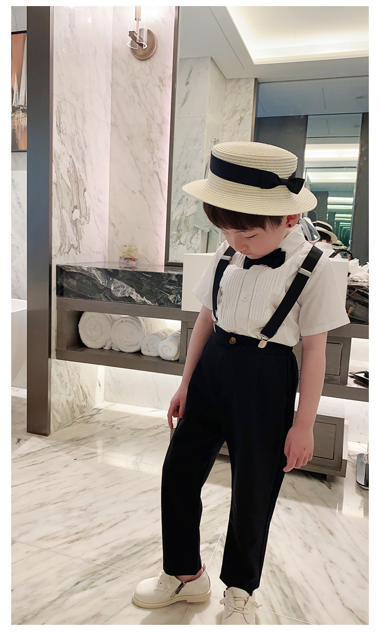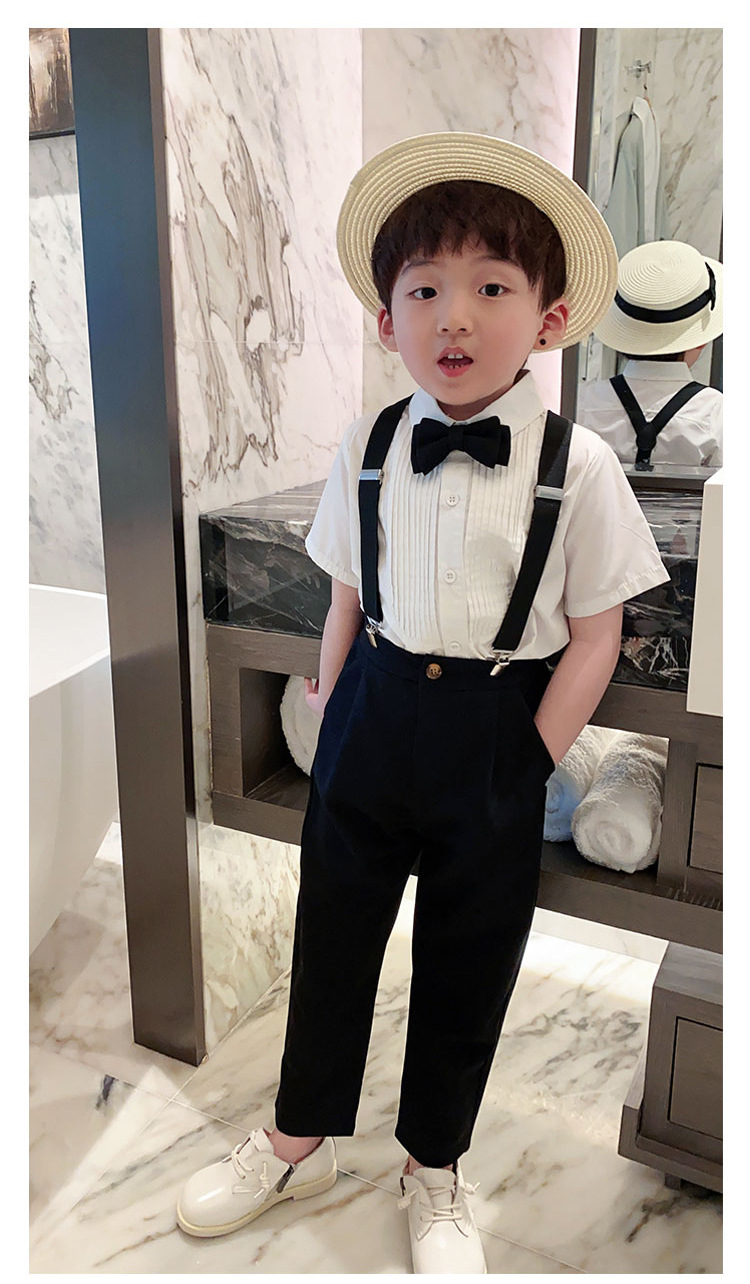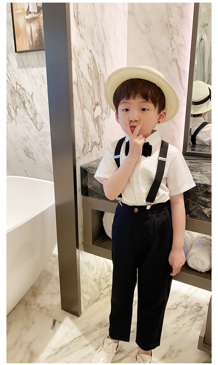 标题:儿童礼服背带套装2022夏季新款短袖衬衫短裤花童男童批发一件代发