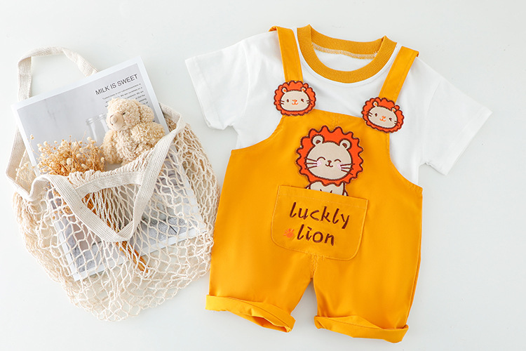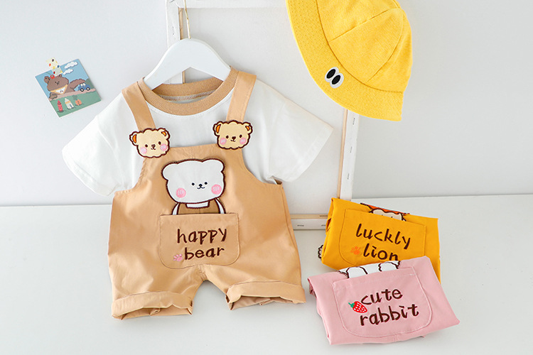 标题:宝宝童套装夏季短袖童装2022夏季短袖套装可爱背带裤卡通图案跨境