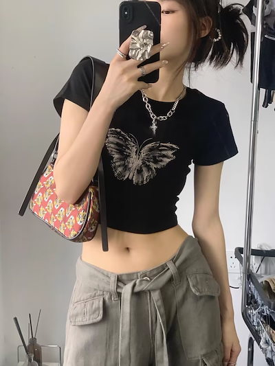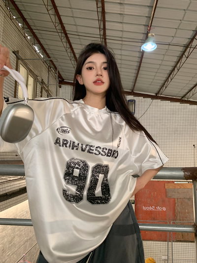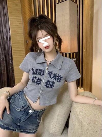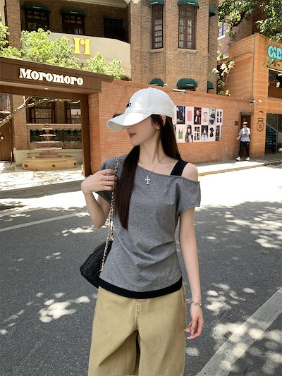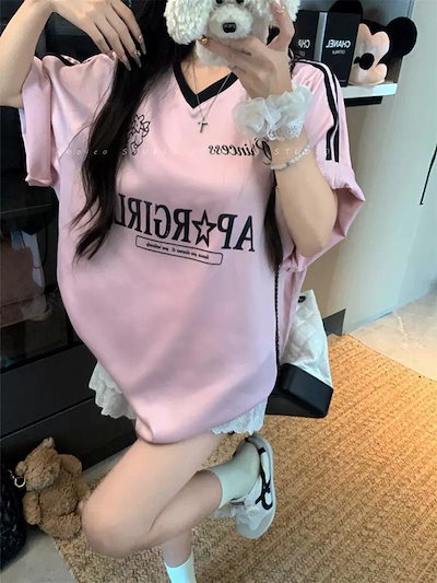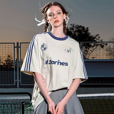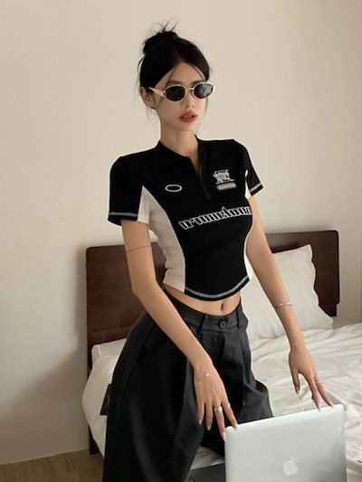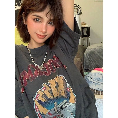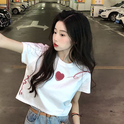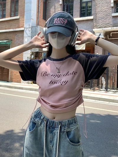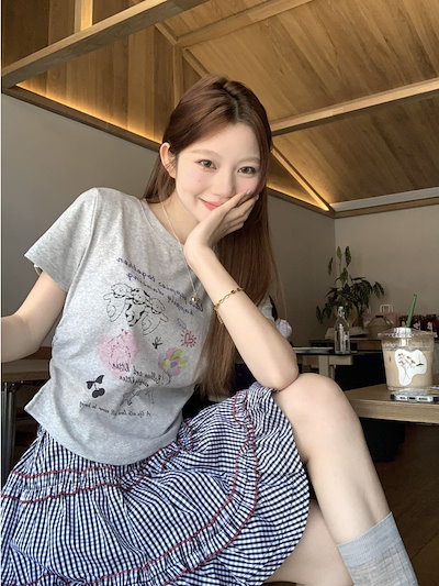 2025春夏 Tシャツ レディース 半袖 韓国風 プリント ショート丈 トップス スポーツミックスストリートフィット感おしゃれ系グラフィックラウンドネックスリーブカジュアル大人可愛いスポーティー配色T