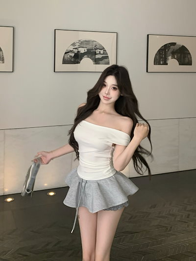 2025春夏 Tシャツ レディースワッフル半袖 韓国風 プリント ショート丈 トップスダブルスポーツミックスストリートおしゃれ系グラフィックラウンドネックスリーブカジュアル大人可愛いスポーティー配色T