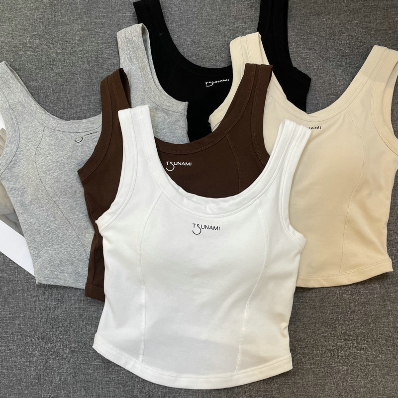 方领一体式带胸垫美背纯色棉吊带背心女内搭外穿短款打底无袖上衣