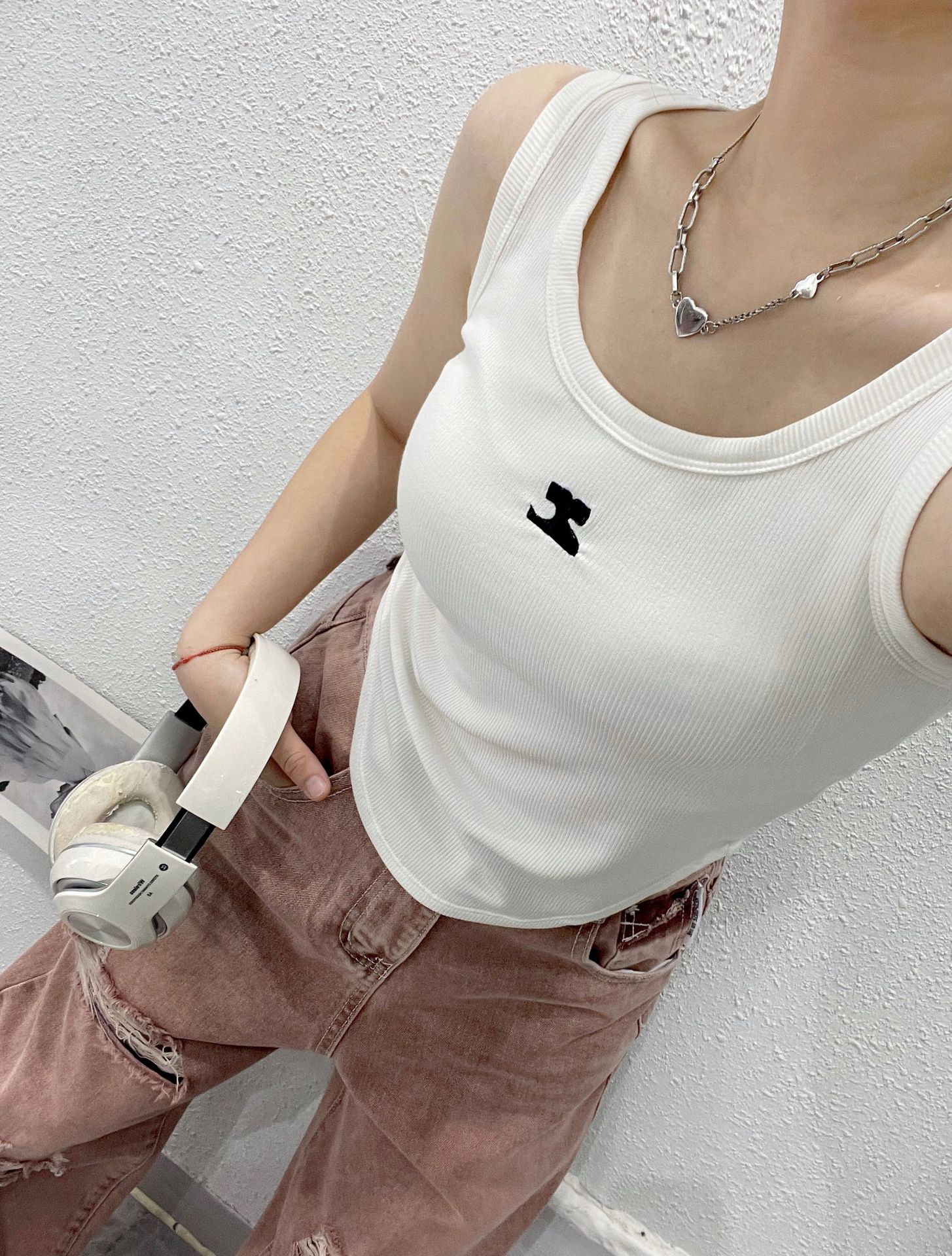 美式辣妹字母刺绣工字背心女秋季外穿洋气修身显瘦不规则磨毛上衣
