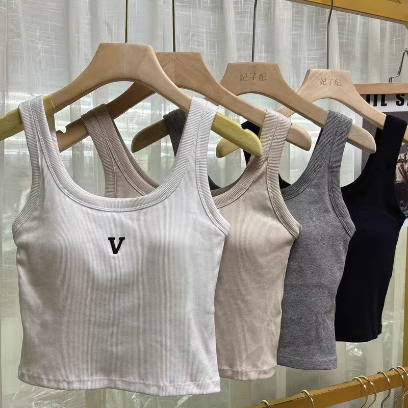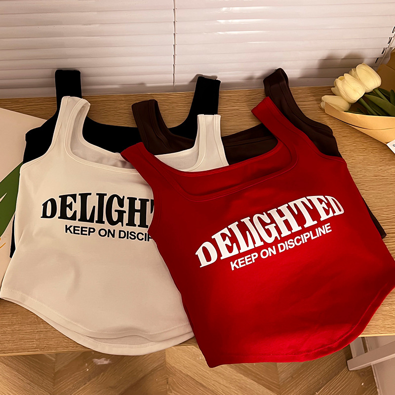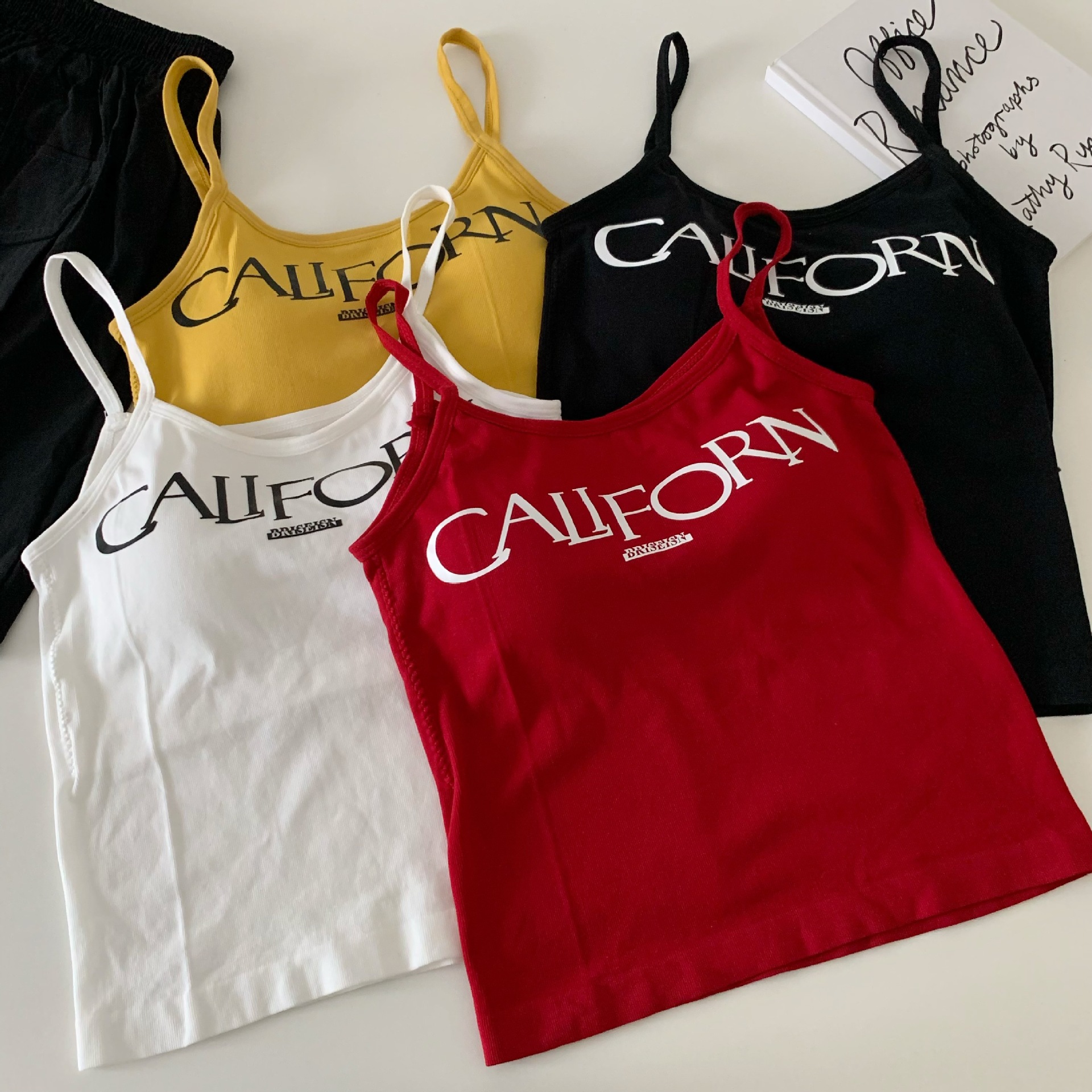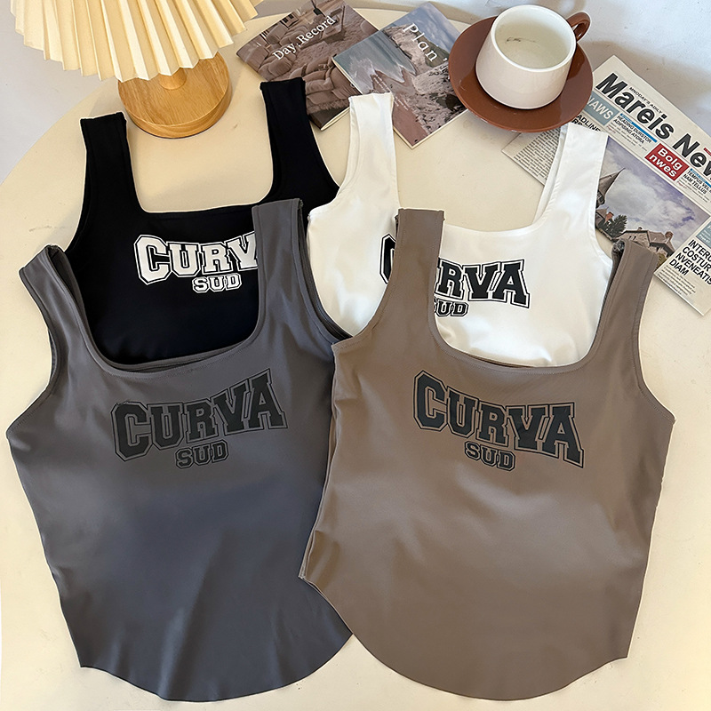 辣妹背心女外穿夏季字母印花带胸垫吊带美背修身内搭无袖打底上衣