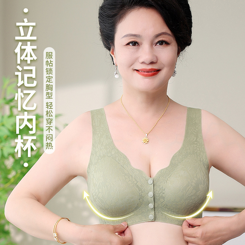 夏季无痕中老年文胸妈妈内衣前扣式透气舒适薄款老人大码背心式