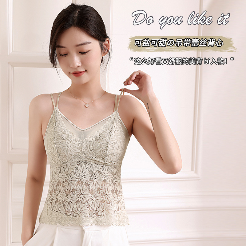 蕾丝美背性感交叉吊带打底内搭薄款背心女一体式胸垫内衣