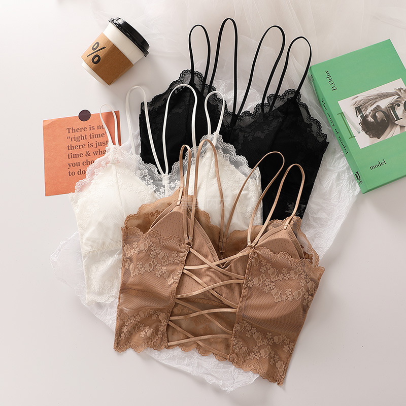 夏季新款纯欲性感蕾丝吊带美背内衣聚拢防下垂长款抹胸带固定胸垫