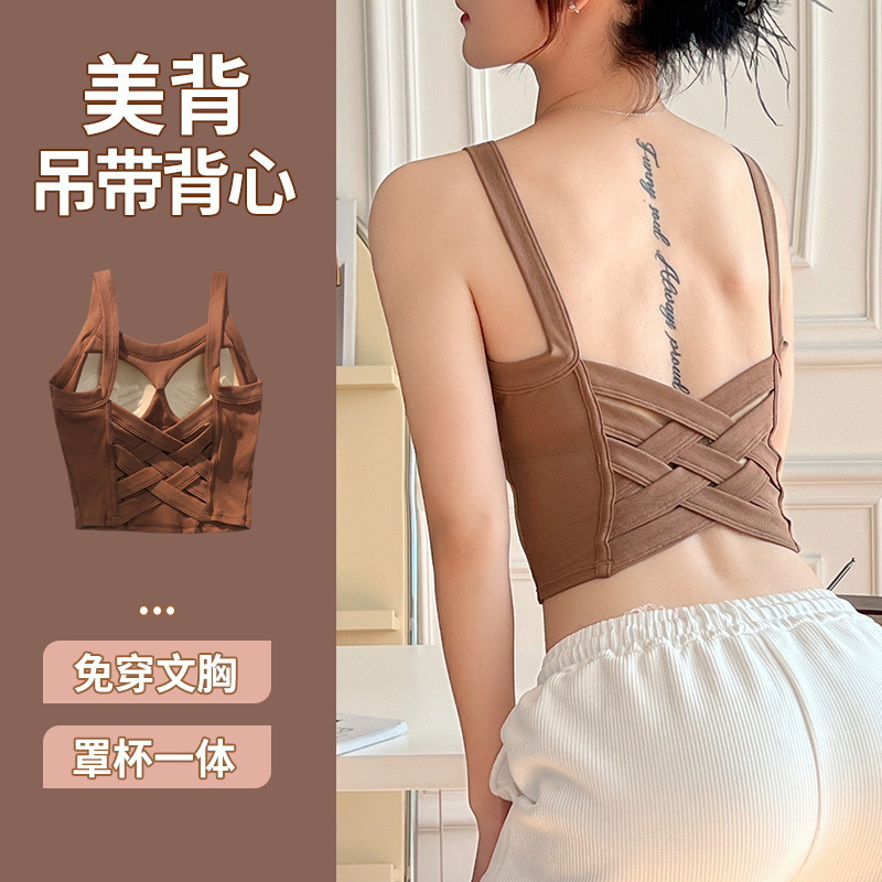 女生美背吊带背心带胸垫一体背心自带Bra文胸显瘦短款打底上衣