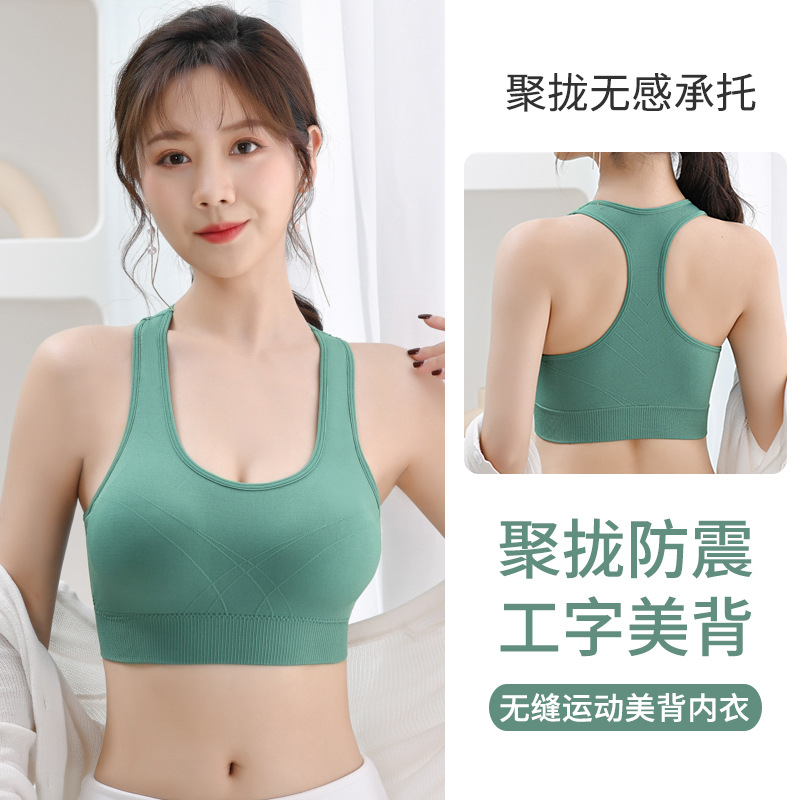 跨境无缝运动内衣女健身文胸聚拢防震背心透气裹胸工字外穿美背女