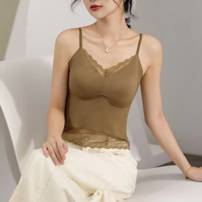 2023新款蕾丝吊带背心带胸垫冰丝美背内衣女内搭打底辣妹外穿抹胸