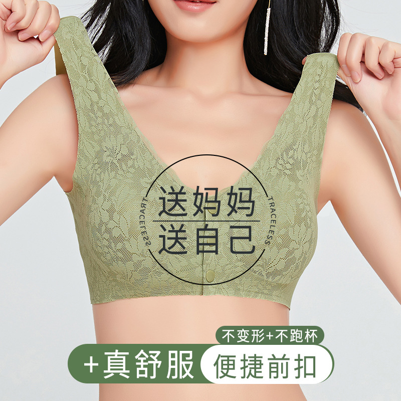妈妈款内衣中老年人无痕内衣女聚拢背心式前扣文胸无钢圈胸罩蕾丝