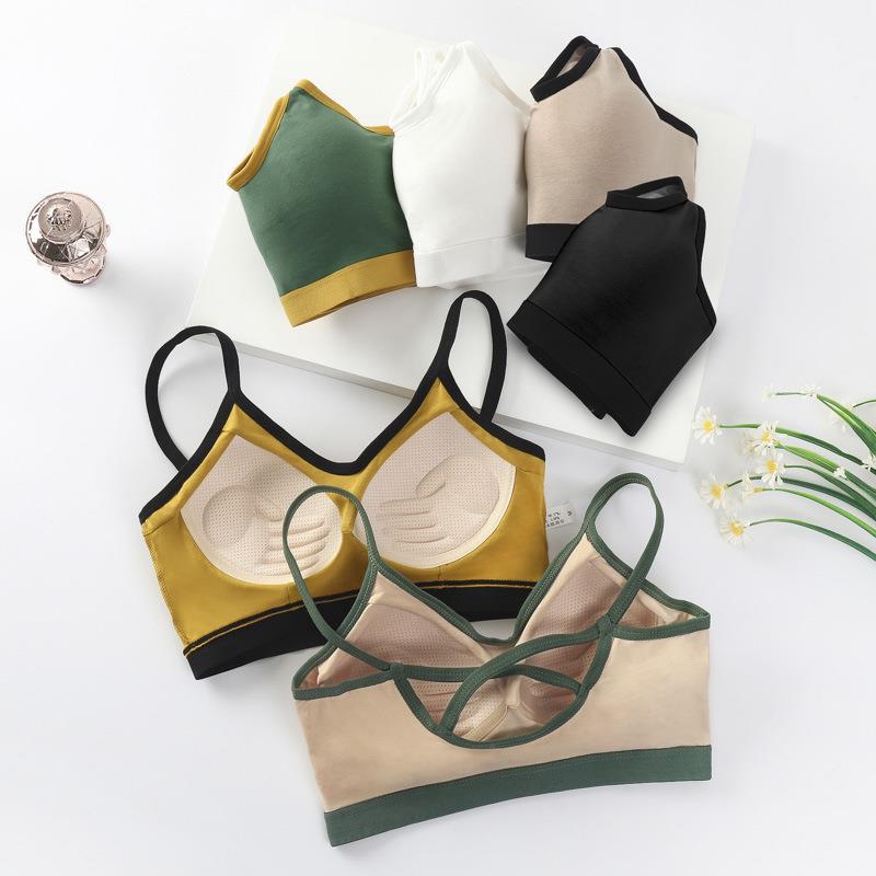 夏季新款内衣纯棉吊带美背内衣女一体式固定裹胸抹胸聚拢运动文胸