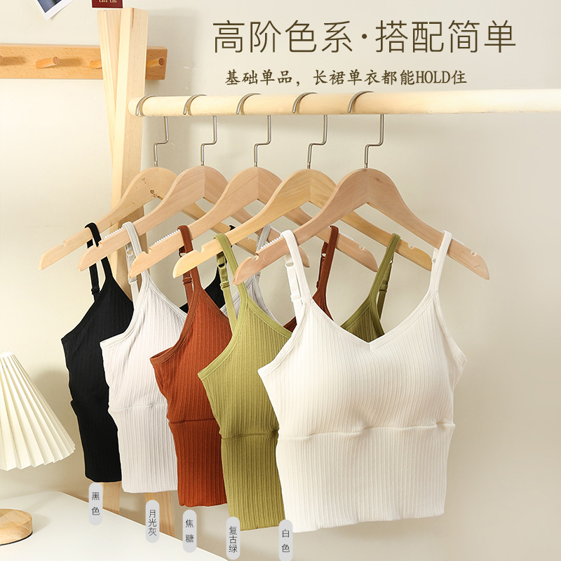 冰丝无痕吊带背心女春夏装2023新款设计感性感亲肤带胸垫内搭上衣