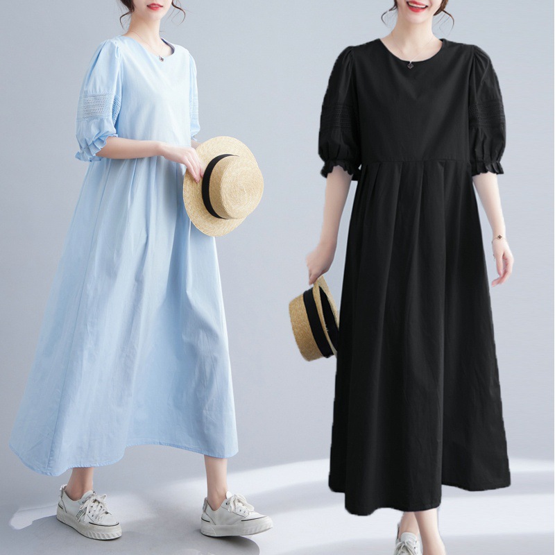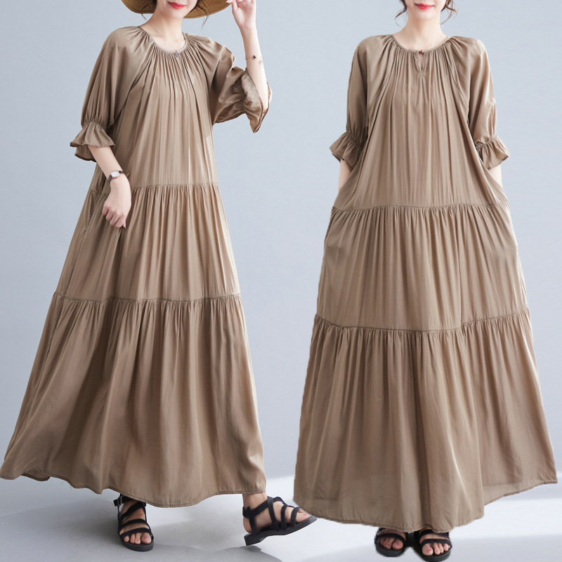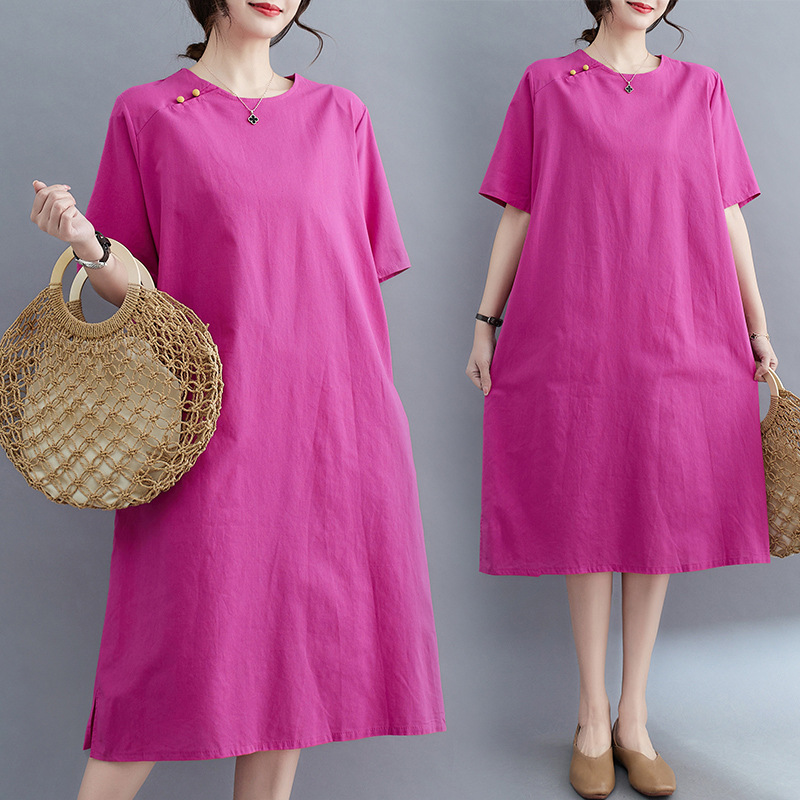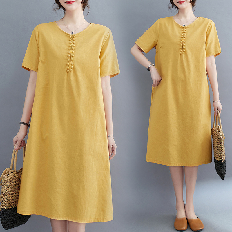 夏の新作半袖ストレートワンピースa字スカートリネンゆったりスカート旅行綿麻婦人服