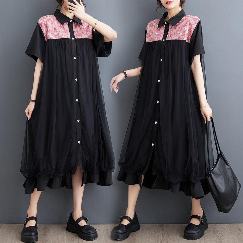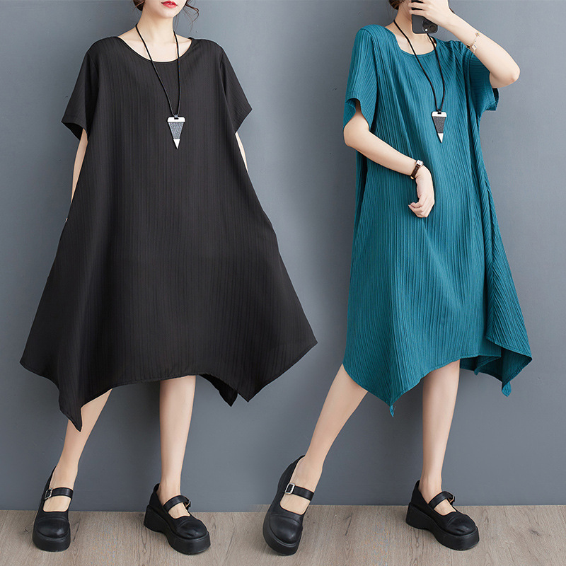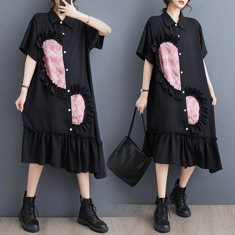 夏の新作ゆったりおしゃれフリルカジュアルシャツスカート文芸不規則気質着やせワンピース