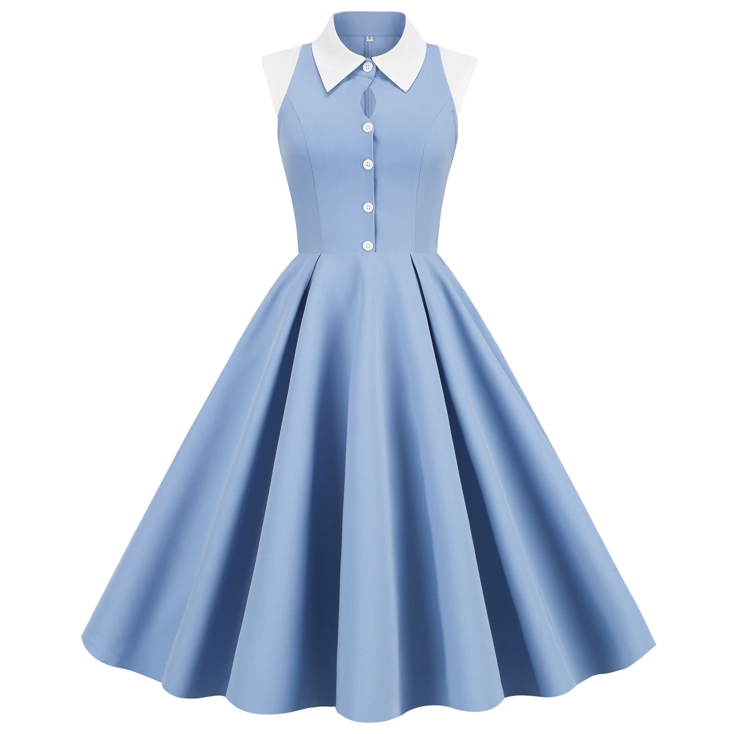 夏服の新韓版ファッションノースリーブシャツワンピースカジュアルゆったりプリーツスカート