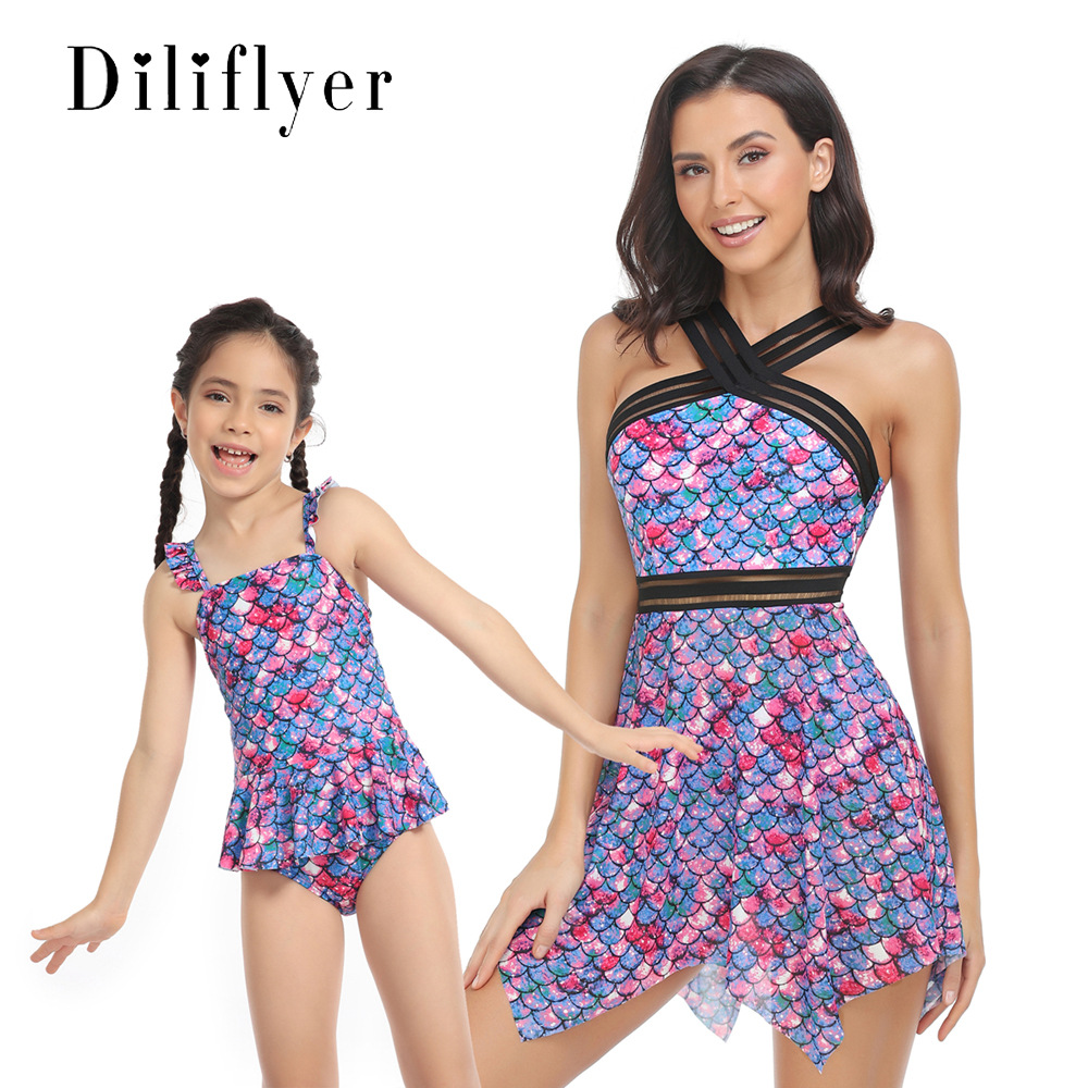 欧米の新作水着ハイフィッシュ親子水着ネックスドレス2点セット
