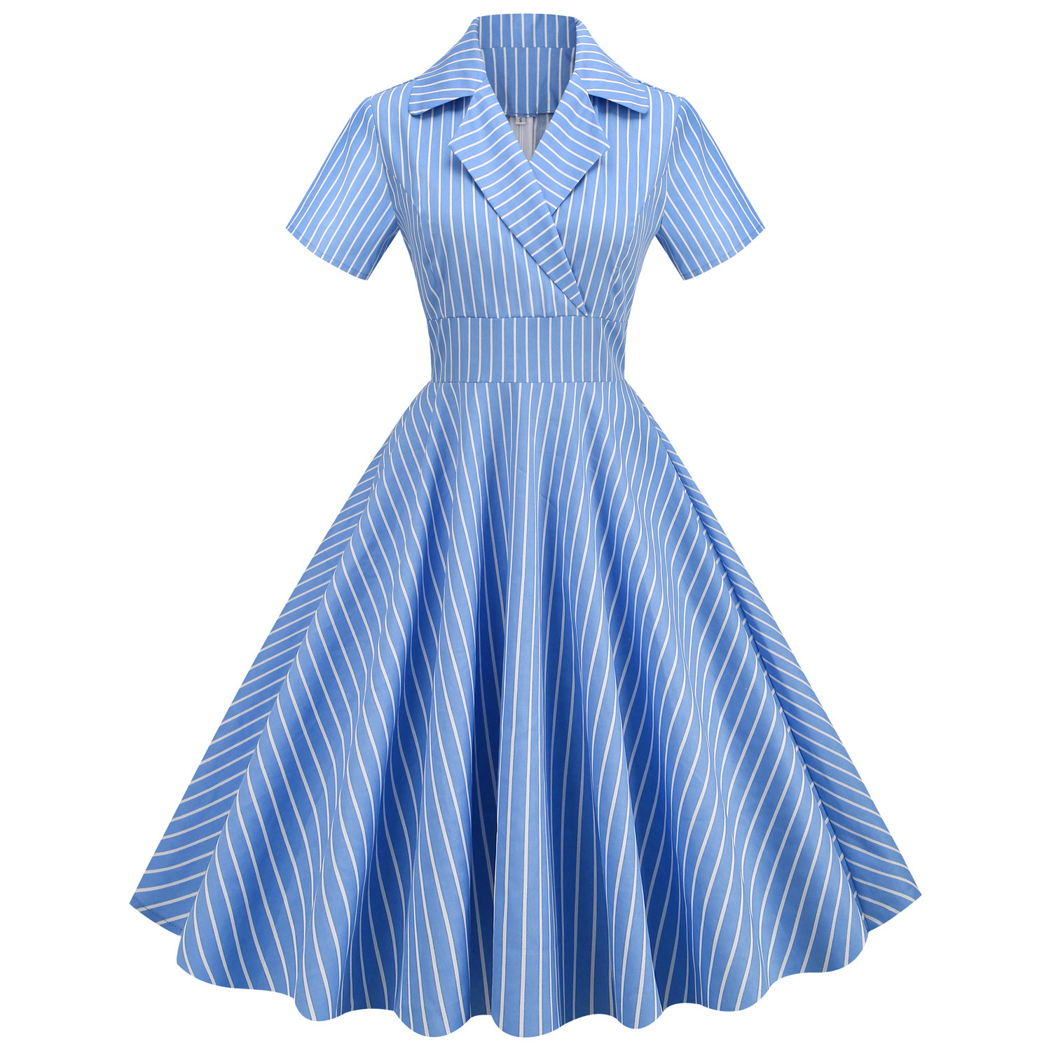 ヘボンリゾートエレガントな雰囲気斜めがけブレザー襟ハイウエストストライプ半袖ウエスト大振りミディアムレトロワンピース