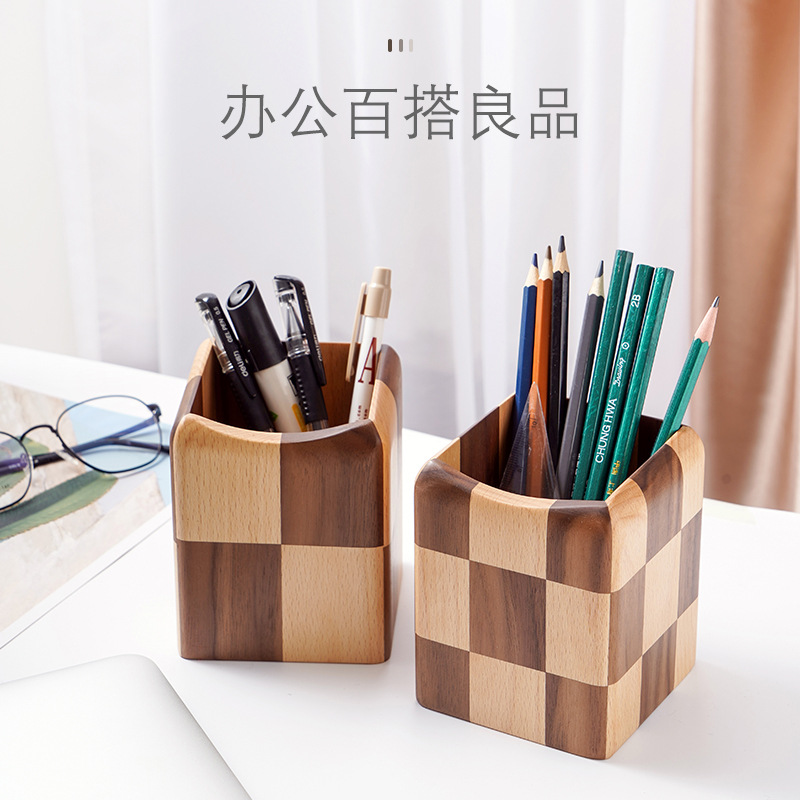 木质笔筒收纳 创意文具 学习ins桌面收纳摆件 北欧简约办公室书房桌上收纳