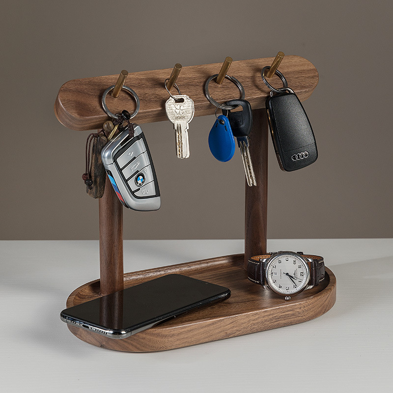 桌面置物架 首饰挂钩 创意摆件 北欧进门玄关摆件 木质钥匙收纳盒客厅