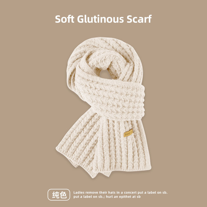 米色编织围巾 女式冬季新款仿羊绒披肩 韩版保暖针织毛线围脖 情侣百搭围巾