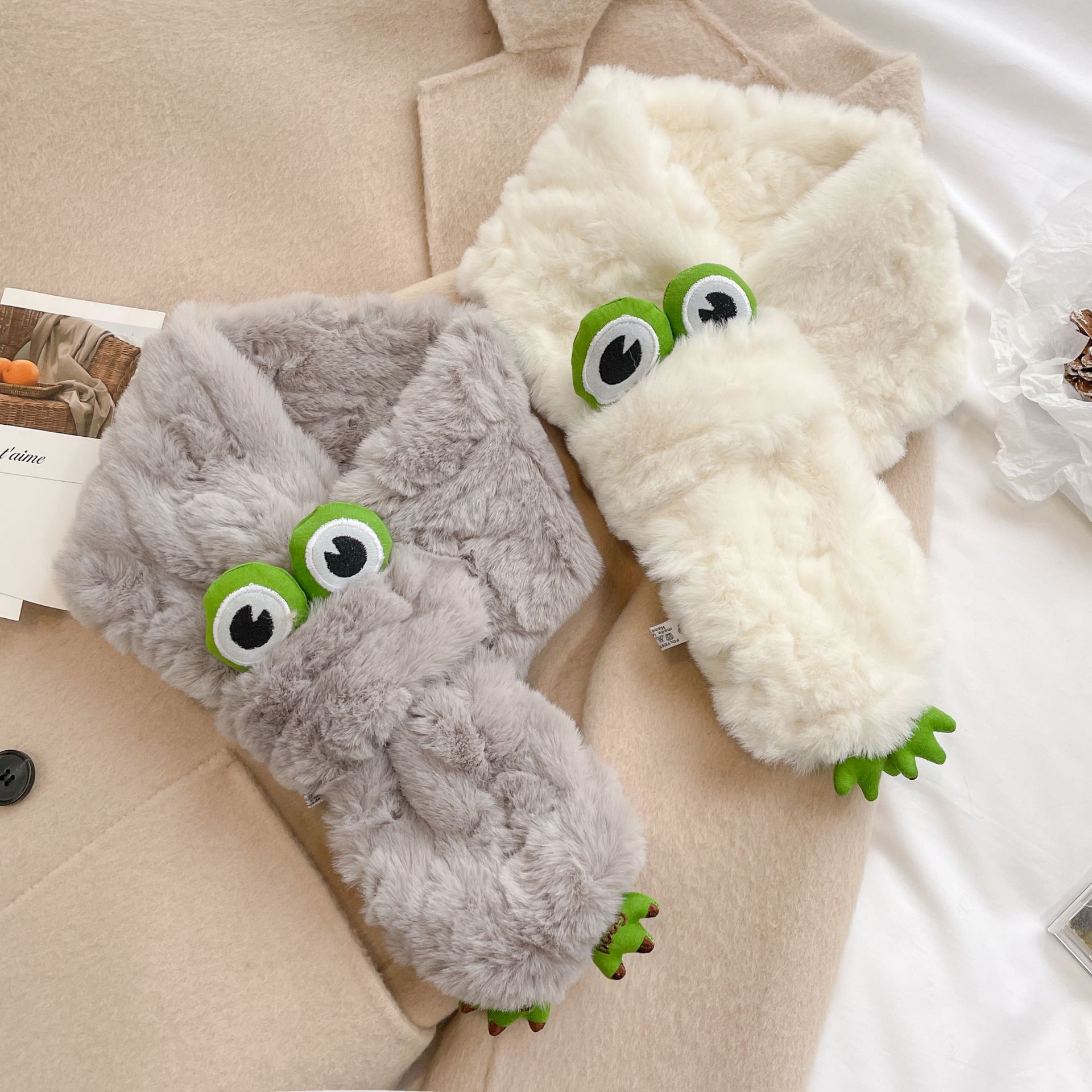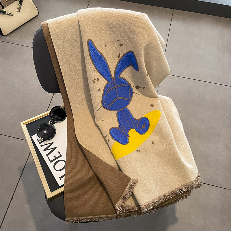 爆款保暖围巾 卡通兔子仿羊绒围巾 女式时尚高级感披肩 冬季厚款围脖 加厚披肩围巾两用百搭