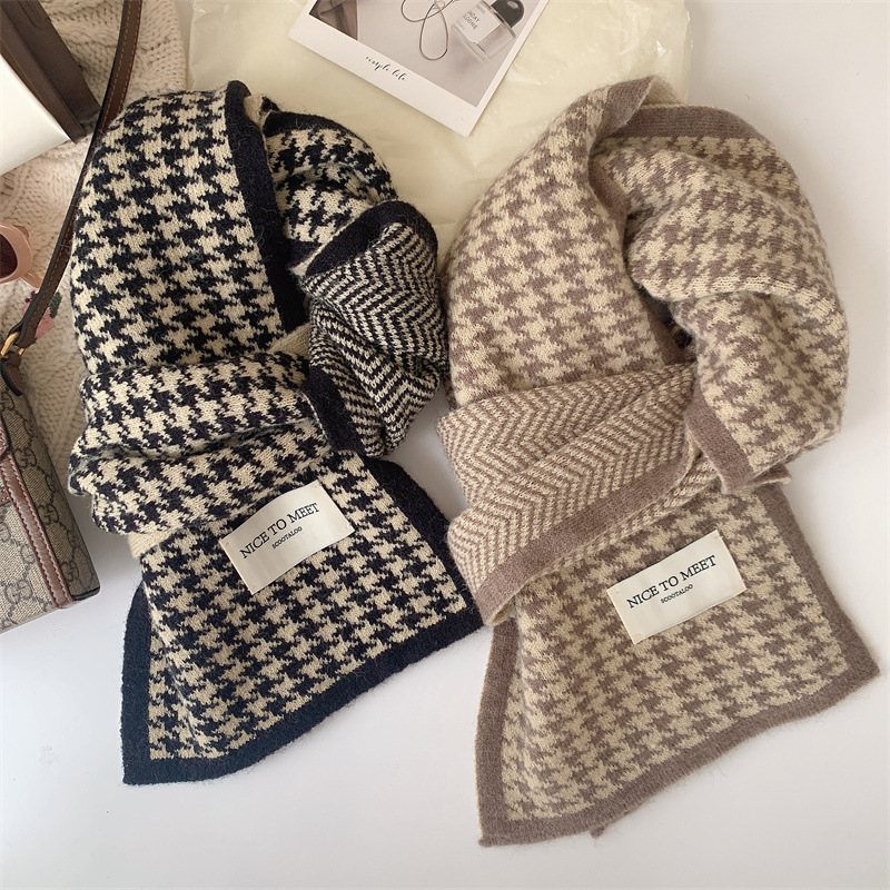 千鸟格围巾 女式冬季仿羊绒加厚围巾 百搭学生围脖 针织保暖情侣围巾