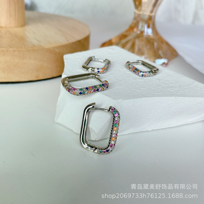 方形微镶彩色锆石耳扣 秋冬女士耳环 简约轻奢高级感耳饰 节日礼物