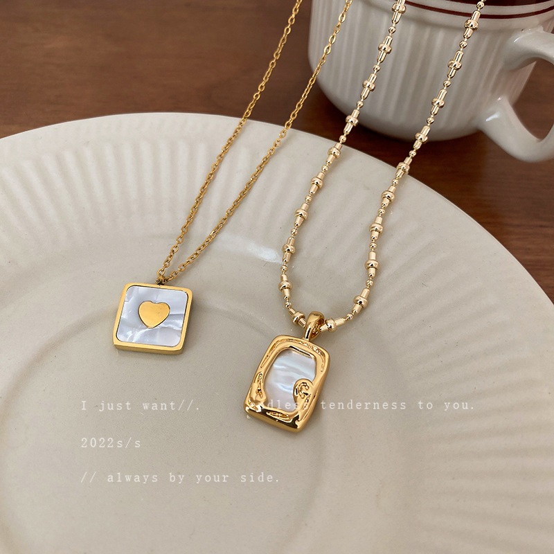 高级感双面贝壳项链 爱心吊坠项链 女士复古个性锁骨链 简约百搭颈链 毛衣链 饰品