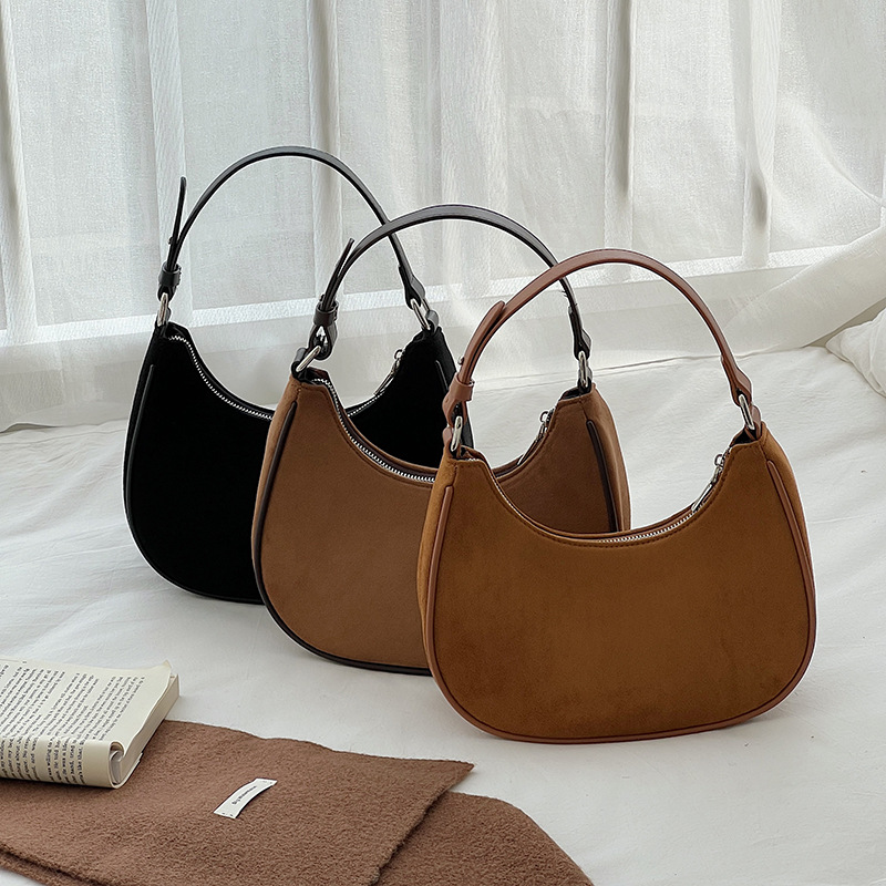 简约洋气手拎包2022春秋ins新款女包麂皮绒手提包时尚拼接腋下包